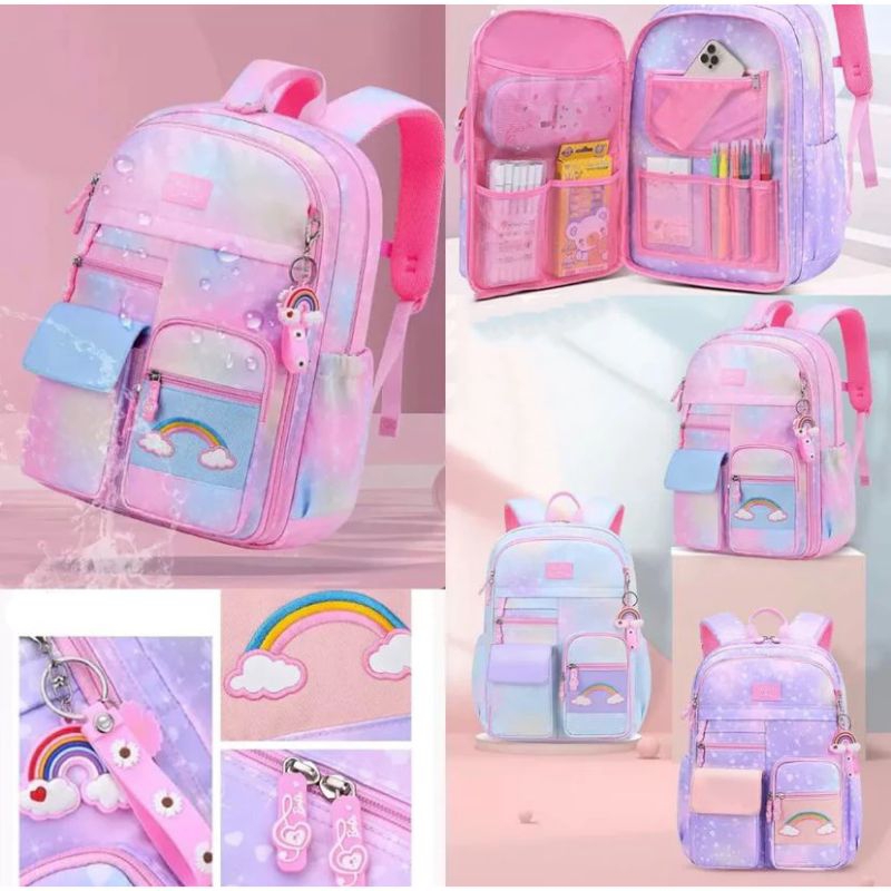 ( zwq ) Tas Ransel Sekolah Anak Perempuan Import Model Kulkas Rainbow / Tas Sekolah Anak Anti Air Model Kulkas Pelangi /