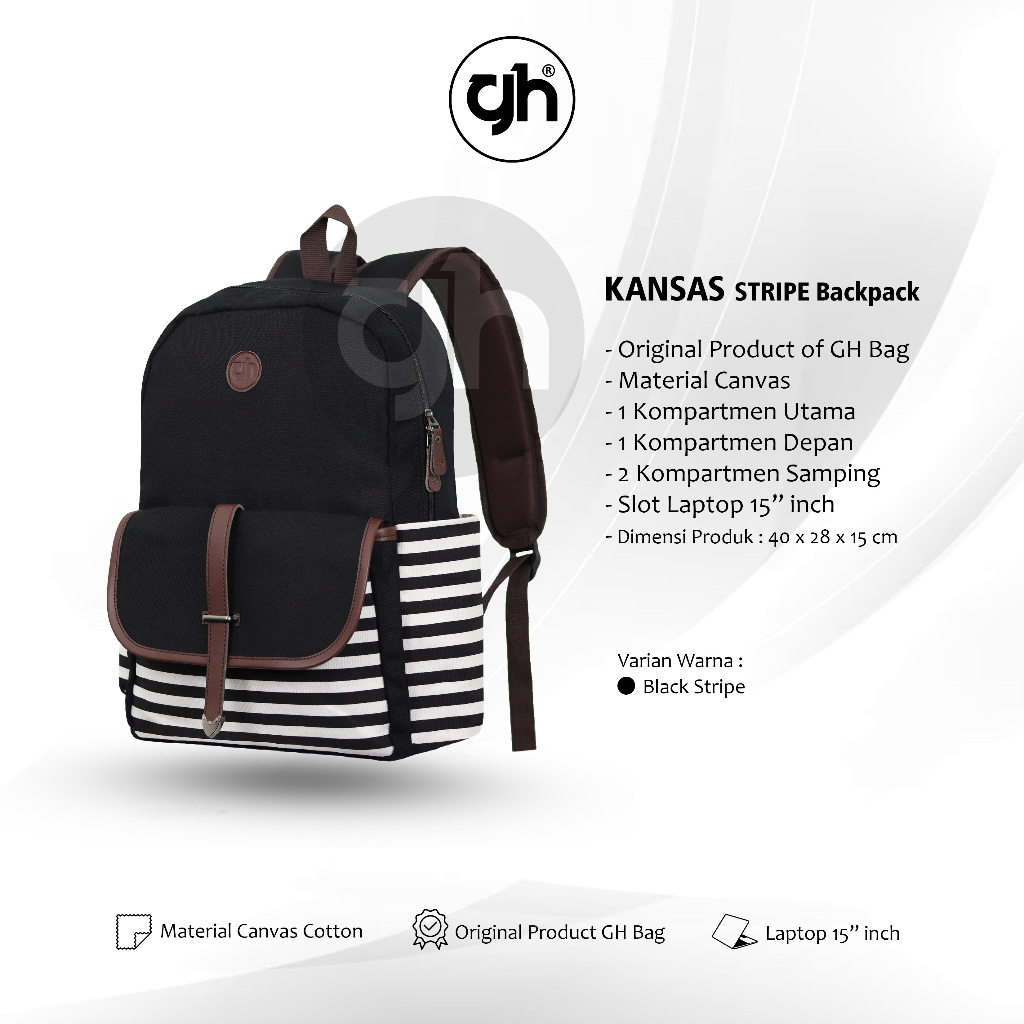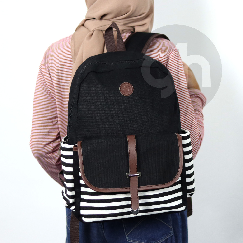 GH-Bag Tas Sekolah Ransel Sekolah Backpack Kanvas Wanita Cocok Untuk SMP SMU KANVAS STRIPE TS