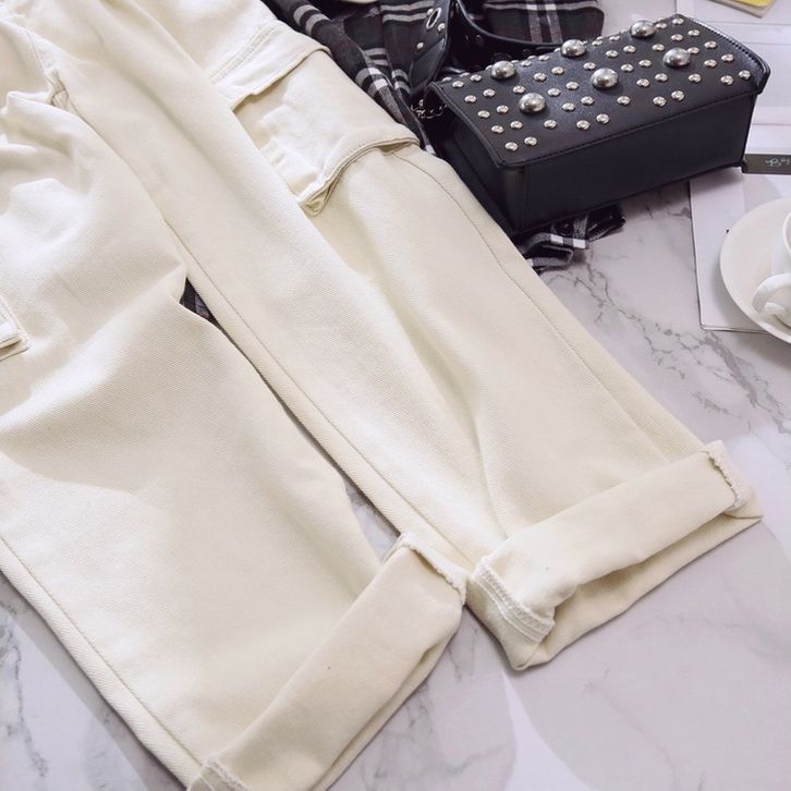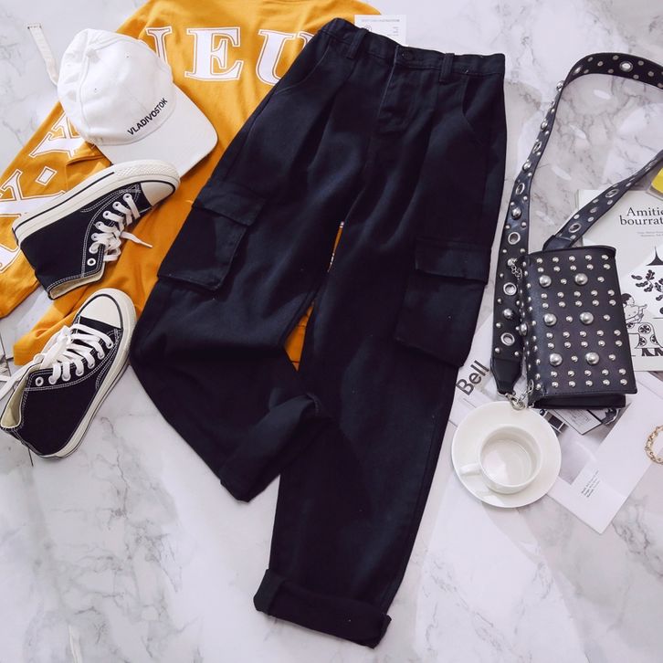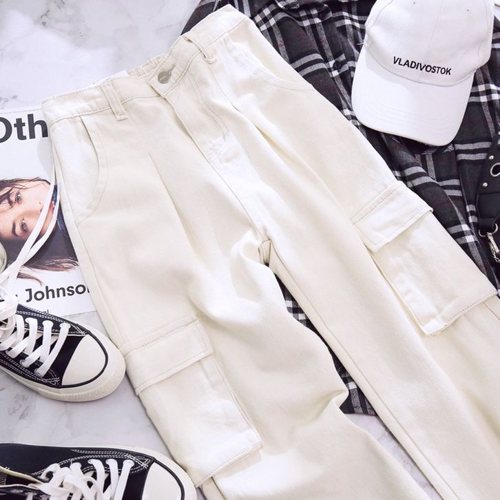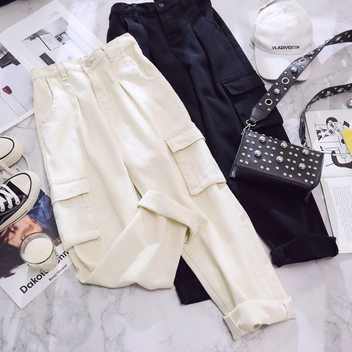 Cargo Jeans--Korean Highwaist Cargo Celana Jeans Wanita Import (realpict)
