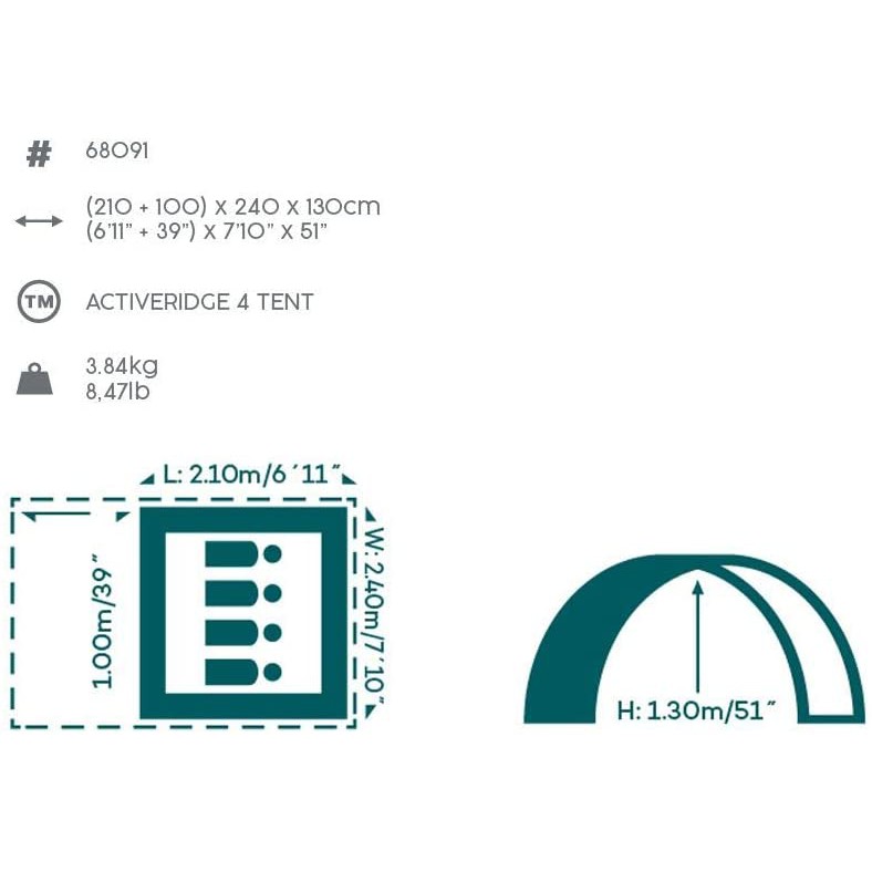 BESTWAY 68091 TENDA CAMPING DOME 4 ORANG NEW PAVILLO ACTIVERIDGE 4P TENT / MONTANA PAVILLO X4 68041