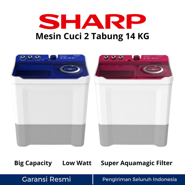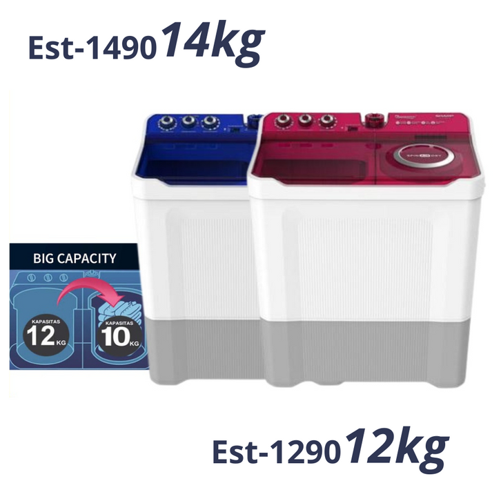 MESIN CUCI 2 TABUNG SHARP EST 1490 14 12 10 9 8 7 KG TWIN TUB AQUAMAGIC SPIN AIR DRY 14KG 12KG 10KG 9KG 8 KG TERBARU