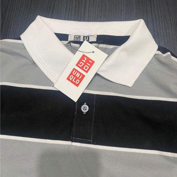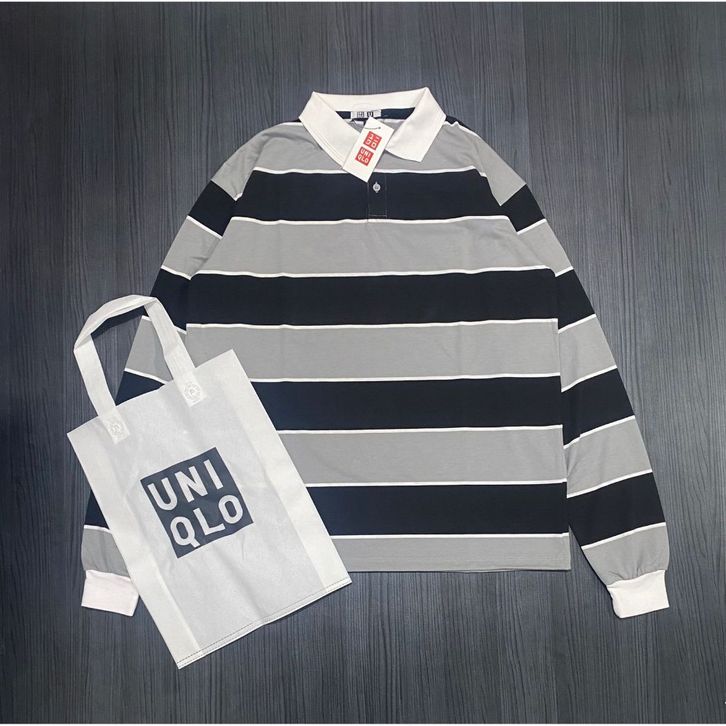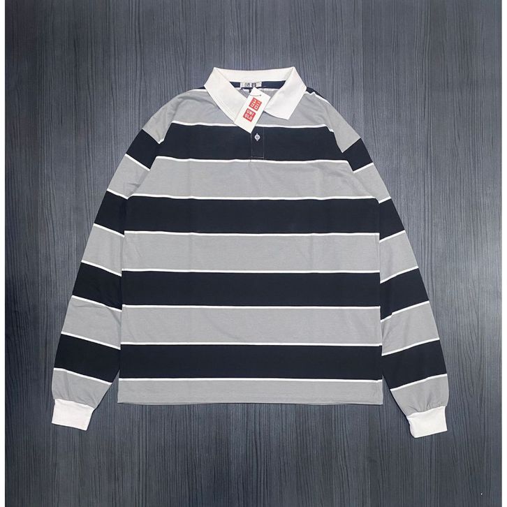 Polo Shirt Stripe UNIQLO Kaos Salur Lengan Panjang