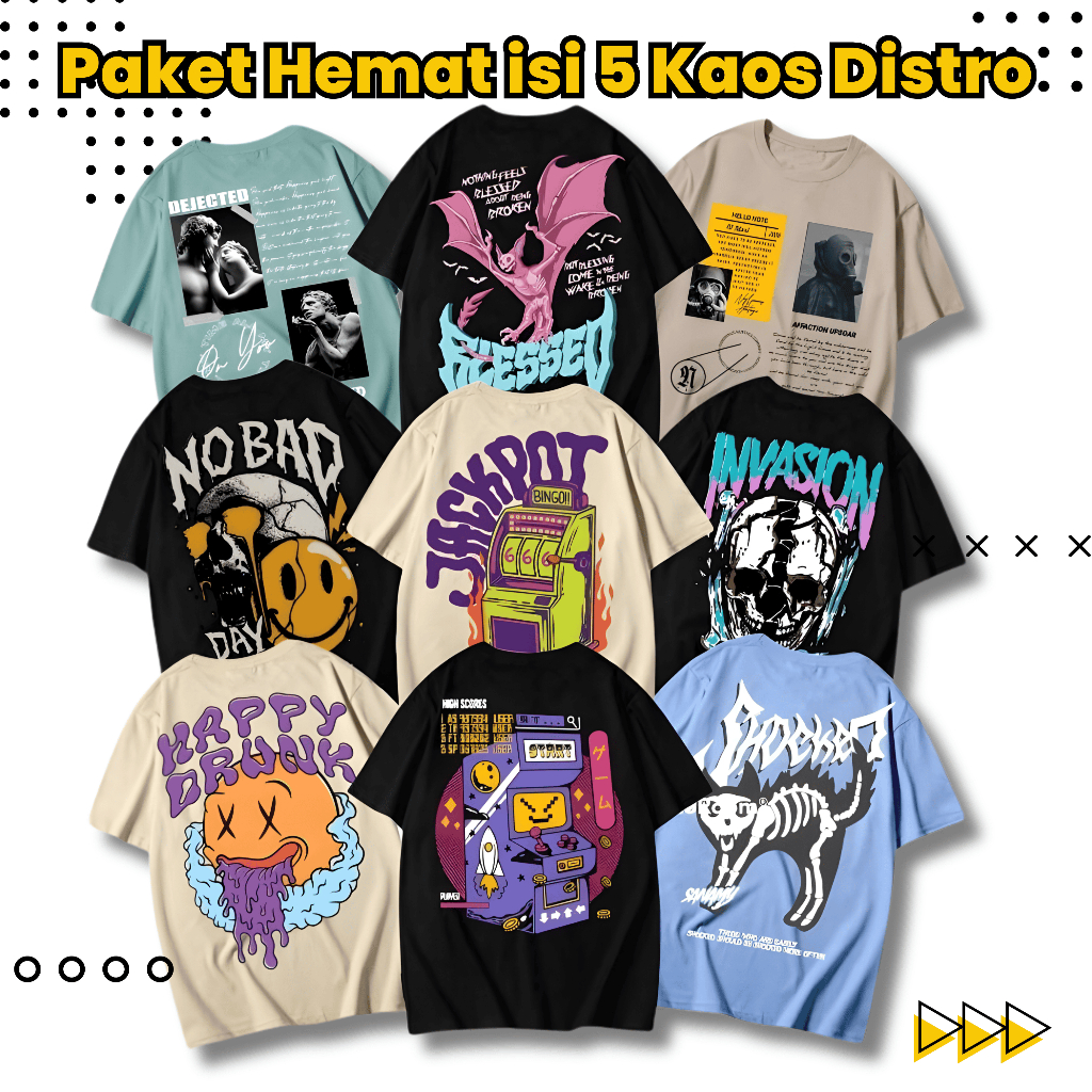 KAOS DISTRO BANDUNG ORIGINAL PRIA WANITA ISI 5PCS PAKET HEMAT OVERSIZE LENGAN PENDEK TERBARU 2026