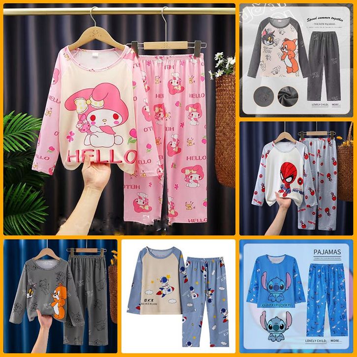 Piyama Anak Import Lucu Bahan Sutra Sintetis Lembut Premium Setelan Baju Tidur Anak Perempuan Laki Laki Umur 4-13thn