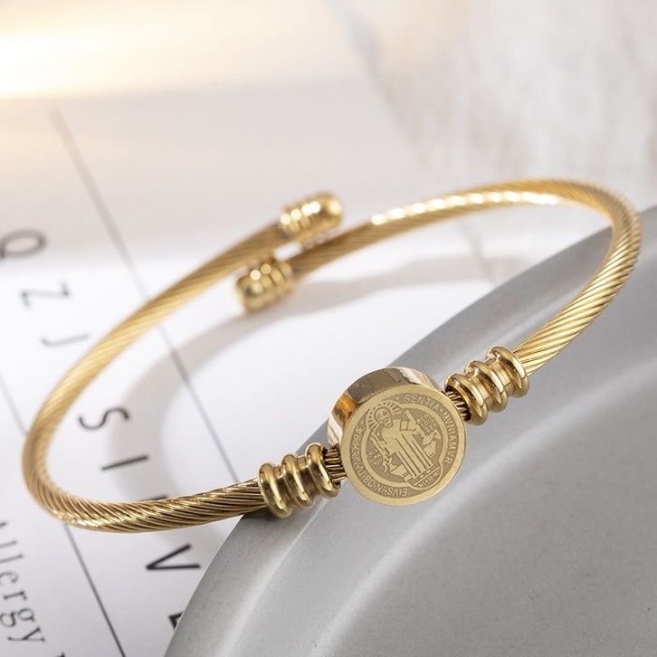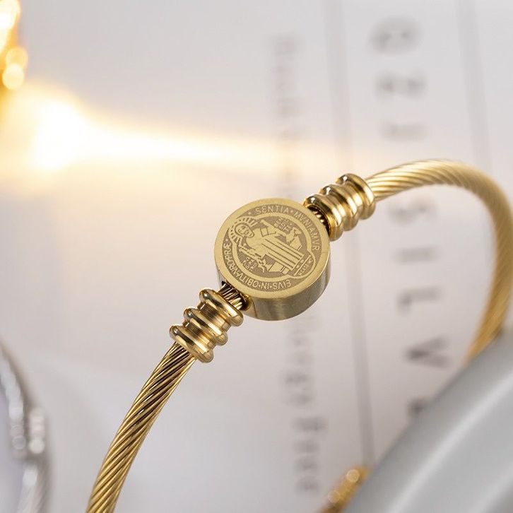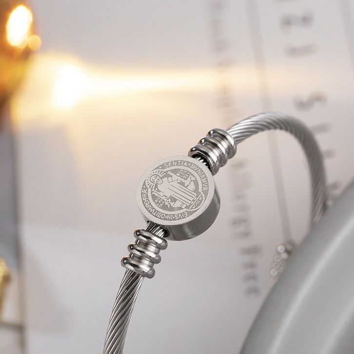Gelang Medali Santo St Benediktus Titanium | Wanita Cewek Katolik