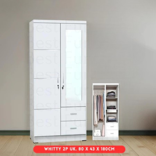 LEMARI PAKAIAN 2 PINTU PUTIH MINIMALIS UK 80X180CM