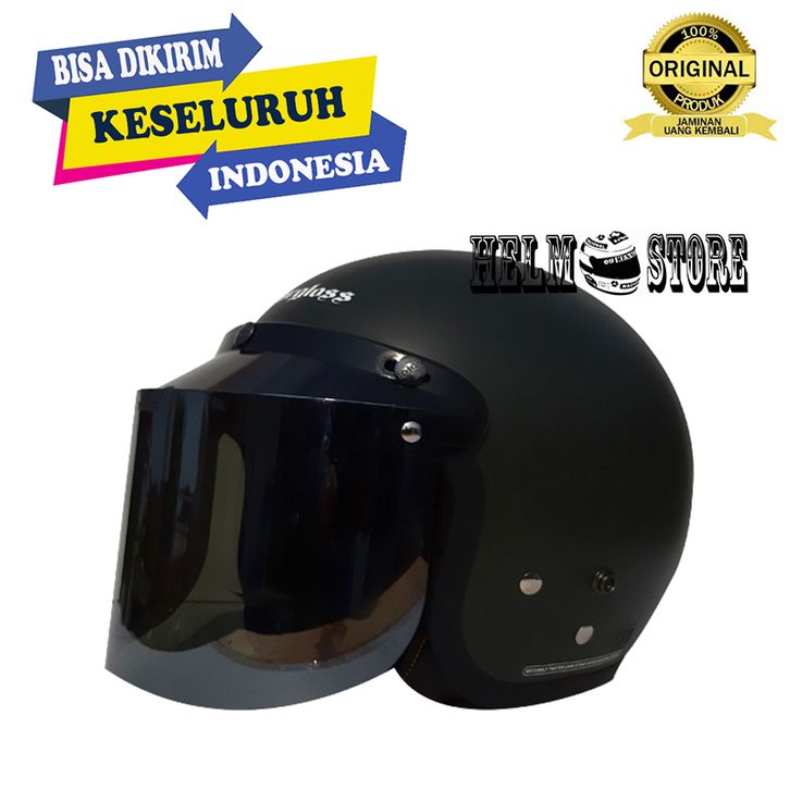 HELM CARGLOSS CFM CARGLOSS RETRO SOLID GREEN DOFF ARMY KACA FLAT INJAK HELMET BOGO RETRO ORIGINAL
