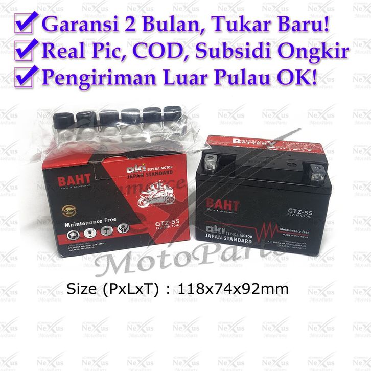 Aki Motor BAHT GTZ-5S GTZ5 YTZ5 12V 5A Karisma Supra Beat Mio