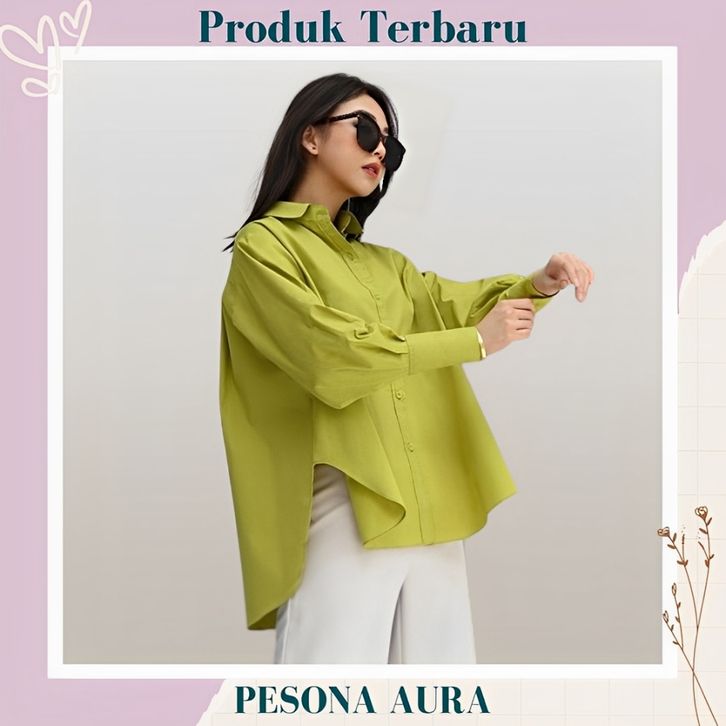 Kemeja Wanita Gaudy Katun Shirt Premium Blouse Atasan Kekinian Kasual Lengan Panjang Best Seller Termurah Pesona Aura