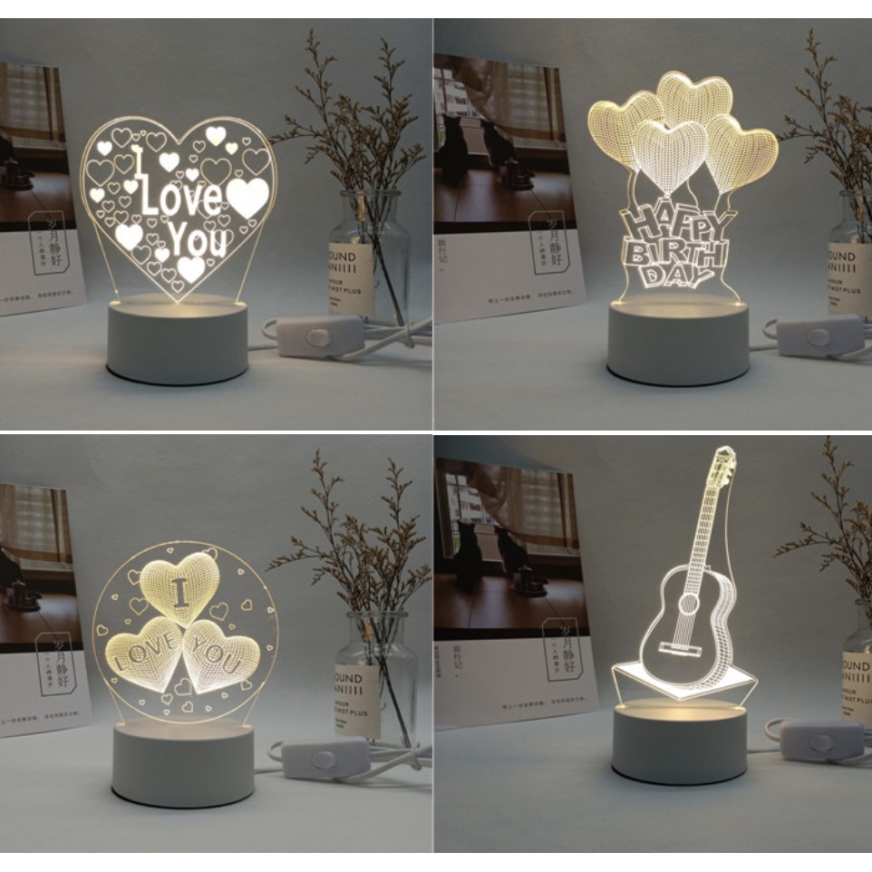 LAMPU TIDUR HIAS LED 3D ACRYLIC TRANSPARANT KACA BENING PAJANGAN