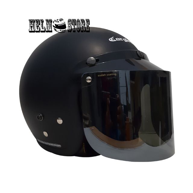 HELM CARGLOSS CFM CARGLOSS RETRO SOLID BLACK DOFF KACA FLAT INJAK HELMET BOGO RETRO ORIGINAL