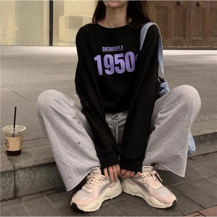 Terlariss 1950s Sweater Crop Oversize Wanita Terbaru Kekinian Oblong Croope - Hitam, L