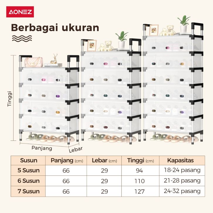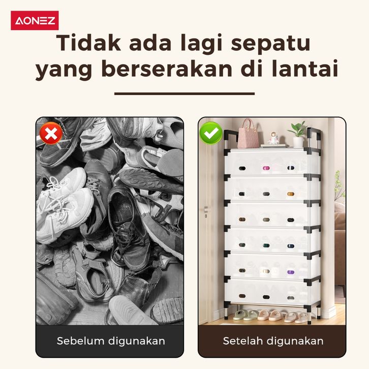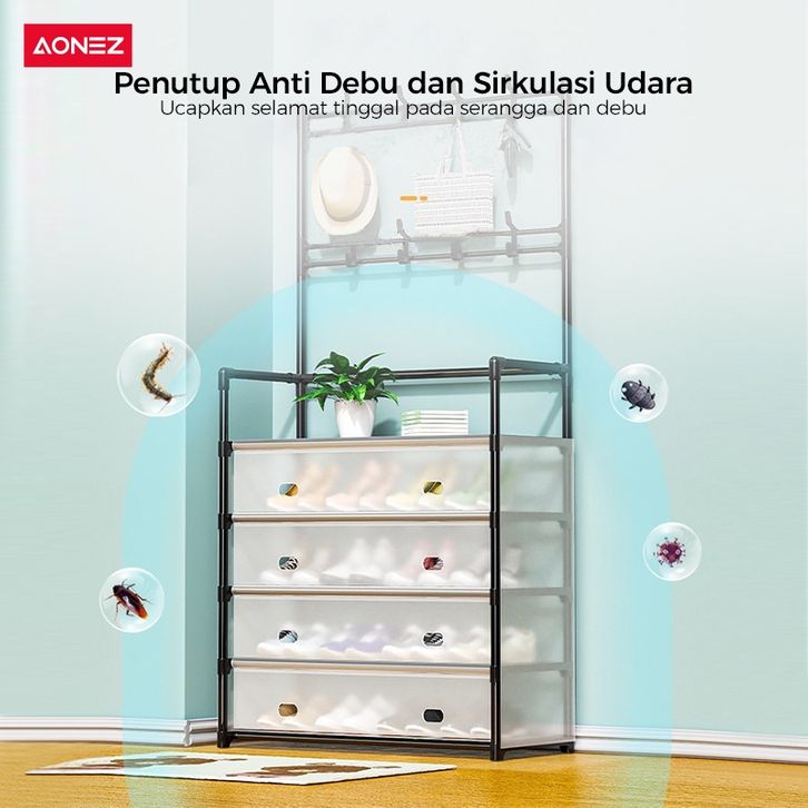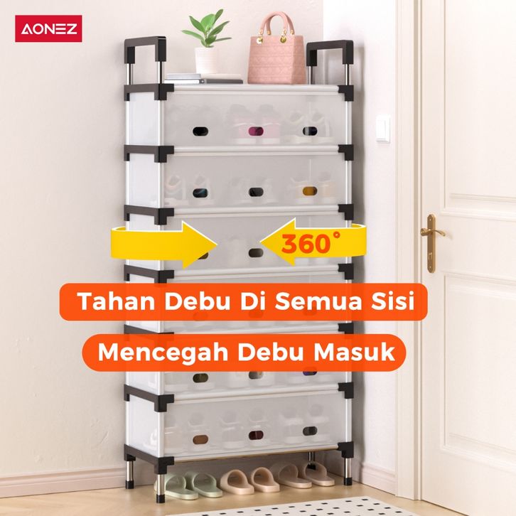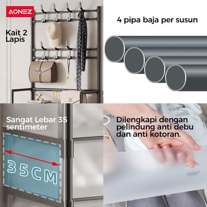 AONEZ Rak Sepatu Anti Debu 5/6 lapis/2 in1 gantungan baju rak sepatu susun tertutup Besi Kuat Tebal Kokoh Rak Tas Serbag