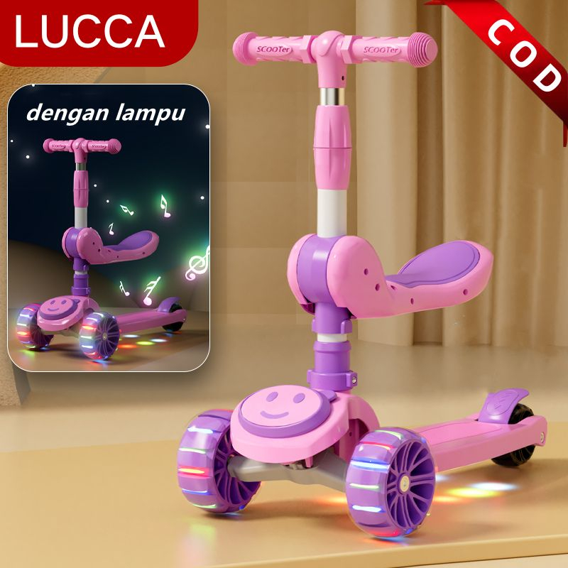 SKUTER ANAK RODA 3 SCOOTER 2 IN 1 LIPAT COCOK UNTUK USIA 2-12 TAHUN ANAK DENGAN LAMPU