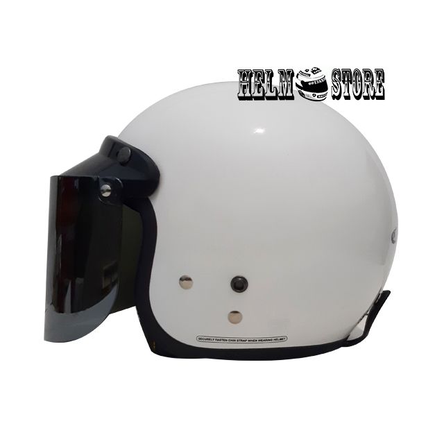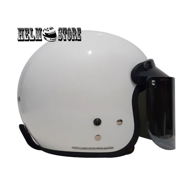 HELM CARGLOSS CFM CARGLOSS RETRO SOLID WHITE KACA FLAT HELMET BOGO RETRO ORIGINAL