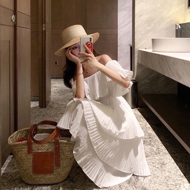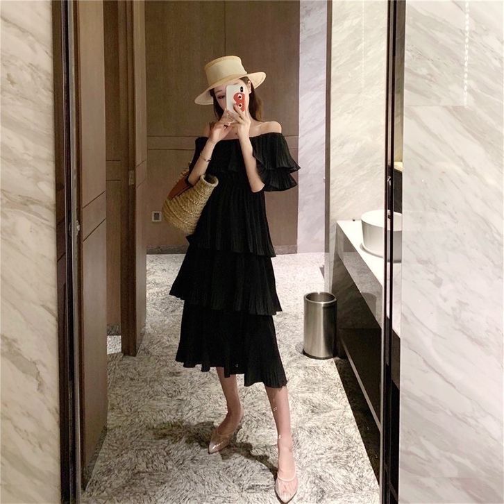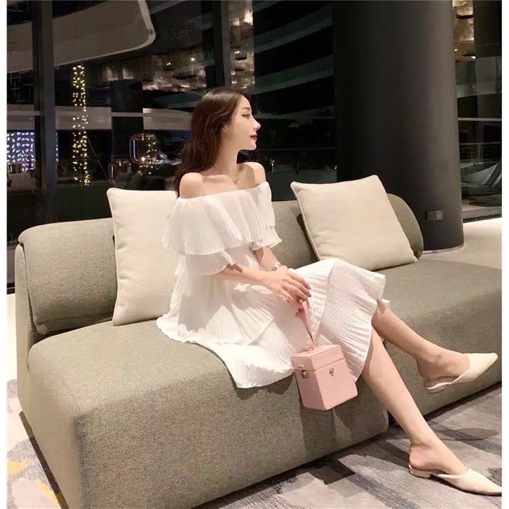 DISCOUNT Maudy Dress Korean Pantai Summer Simple Basic Sabrina Sexy Polos Plain Midi Bumil Kerut Stretch Pantai Casual