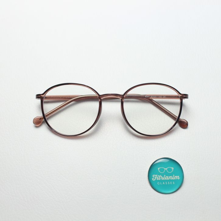 Kacamata Bulat Minus 8247 (-0.25 s/d -16.00) Lensa Standar / Tipis (Murni / Photocromic / Blueray / Bluecromic)