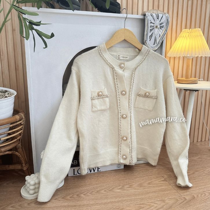 Cardigan Rajut Wanita MAMAMARA Cardigan Wol Rajut Korean Style Lis Full Mutiara Premium