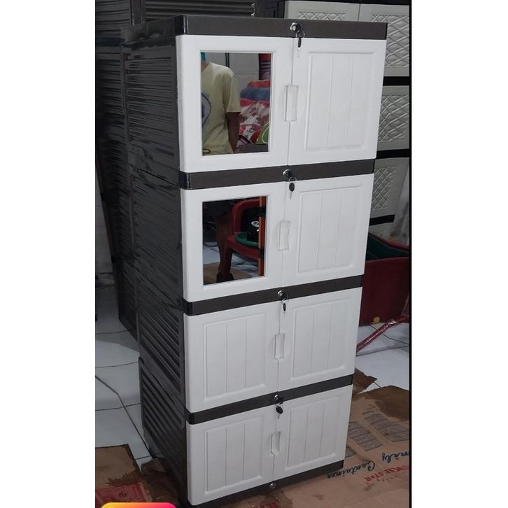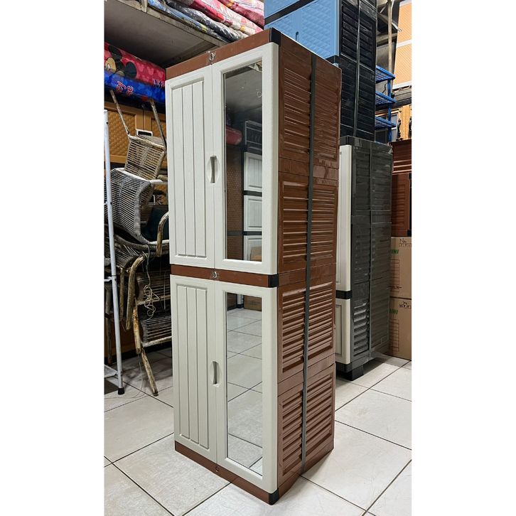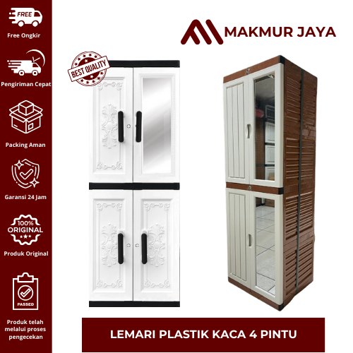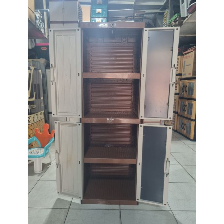 LEMARI PAKAIAN PLASTIK KACA 4 PINTU