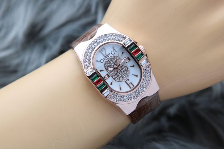 Jam Tangan Wanita GC Kulit G1501C Case Oval Permata Free Box & Baterai Cadangan