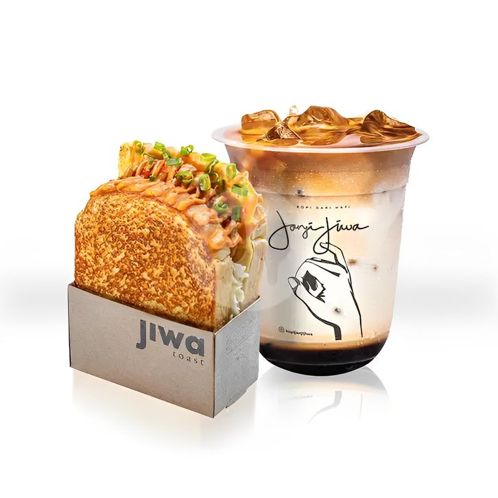 1 LITER SATUJANJI, AMERICANO, ASIK BARENG TEMANSEJIWA, BEEF TRUFFLE MAYO, BEEF TRUFFLE MAYO SPICY BULGOGI, BLOSSOM BERRY, BROWN SUGAR EARL GREY MILK TEA, BROWN SUGAR MILK TEA WITH CINCAU, BROWN SUGAR MILK TEA WITH COFFE JELLY, CARAMEL LATTE, CARAMEL MACCHIATO, CHEEZY CRISPY CHICKEN MENTAI, CHICKEN KATSU CURRY MAYO, CLASSIC BUTTER TOAST MADE WITH KITKAT SPREAD, COMBO ASIK BERDUA, COMBO JIWA TOAST, COOKIES N CREAM, CRISPY CHICKEN MENTAI, CRISPY CHICKEN NUGGET, CRISPY CHICKEN SPICY, CRUNCHY CHOCO, CRUNCHY CHOCO CHEESE, DIPPIN' FRIES, DIPPIN' TOAST, DOUBLE CHEESE HAMBURG, DOUBLE SHAKEN SENJA, EGG AND CHEESE, EGG CURRY MAYO, EXTRA SAUCE, GEBER BEEF BARBAR, GEBER CHICKEN BARBAR, GEBER CHICKEN SANTUY, GEBER KENTANG AJA, GEBER KULIT AJA, HAMBURG CURRY MAYO, HAZELNUT CHOCO, HAZELNUT LATTE, KOPI MILO, KOPI MILO MACCHIATO, KOPI MOCHA HAZELNUT, KOPI POKAT, KOPI POKAT SOKLAT, KOPI SOKLAT, KOPI SUSU, KOPI SUSU SENJA, KOPI TARIK, LATTE, LIVIN' HONEY ORANGE COFFE, LIVIN' HONEY PISTACHIO LATTE, MATCHA HAZELNUT LATTE, MATCHA LATTE, MILO MACCHIATO, NASI GEBER KULIT RENYAH, NASI GEBER SALTED EGG, NASI GEBER SAMBAL MERAH, NGEMIL SENDIRI, PANDAN LATTE, PASSION PEACH TEA, PURPLE LEMONADE, PURPLE SUMMER, SALTEG CARAMEL CRUSH MADE WITH KITKAT SPREAD, SMOKED BEEF AND CHEESE, SPICY BULGOGI, SUSU COKLAT, SUSU GULA AREN DENGAN CINCAU, SUSU GULA AREN DENGAN COFFE JELLY, TEH EARL GREY, TIGA TOAST LEBIH HEMAT, VANILLA LATTE, KOPI SUSU SENJA , CHICKEN SPICY