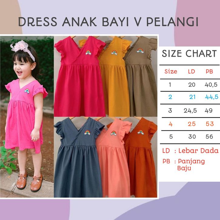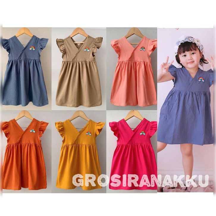 Dress Anak Bayi V Pelangi Mix Warna Size 1-5th