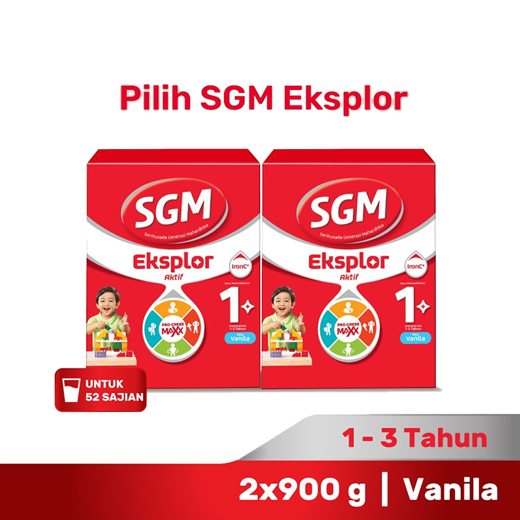 Susu Sgm Eksplor 1+ Rasa Vanilla Pertumbuhan 1-3 Tahun 900gr 2 Box