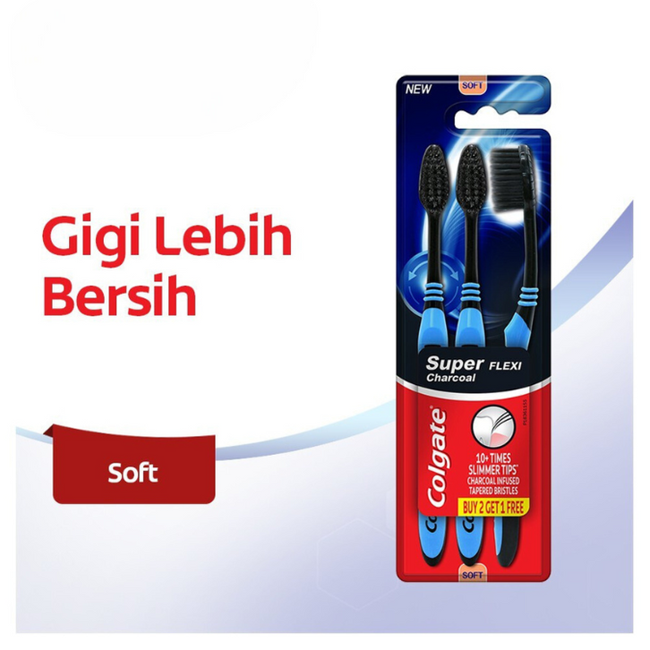 Sikat Gigi Colgate Super Flexi Charcoal Soft Toothbrush 3pcs