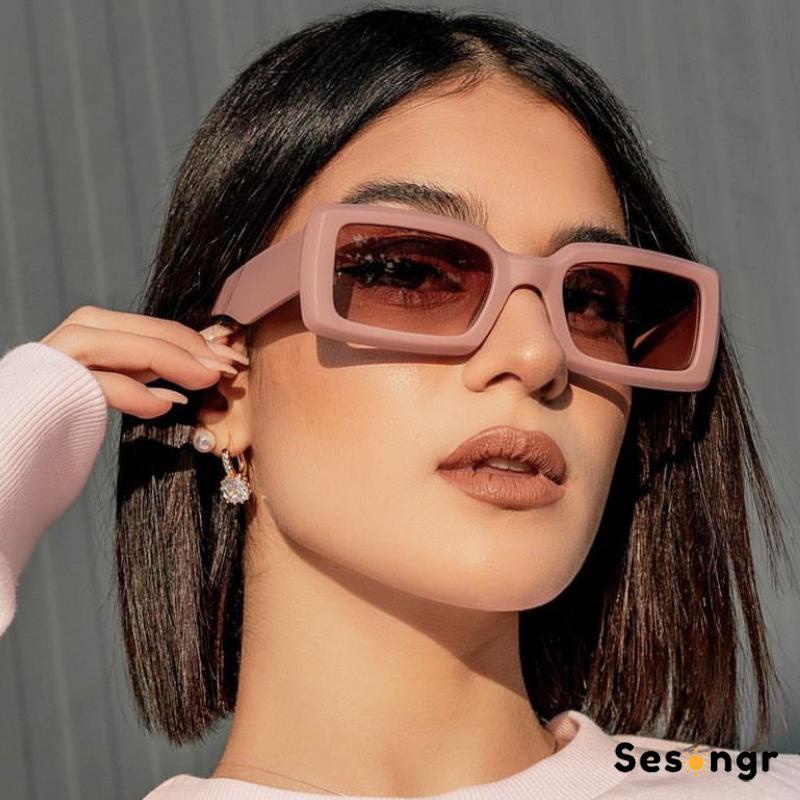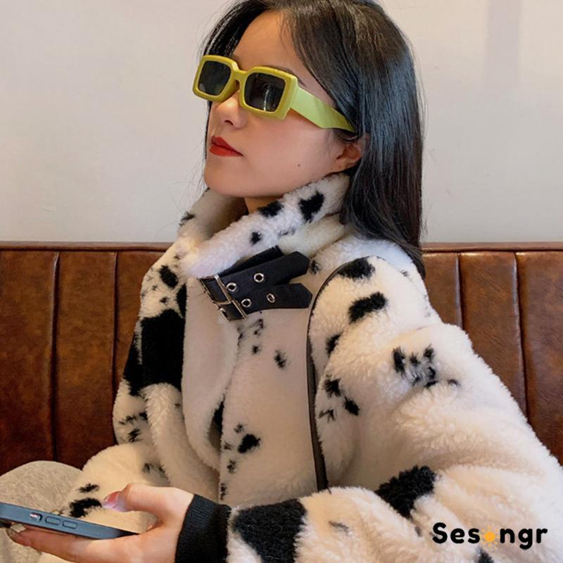 KACAMATA HITAM UV400 BENTUK PERSEGI PANJANG MOTIF LEOPARD GAYA RETRO UNTUK WANITA FASHION - SG