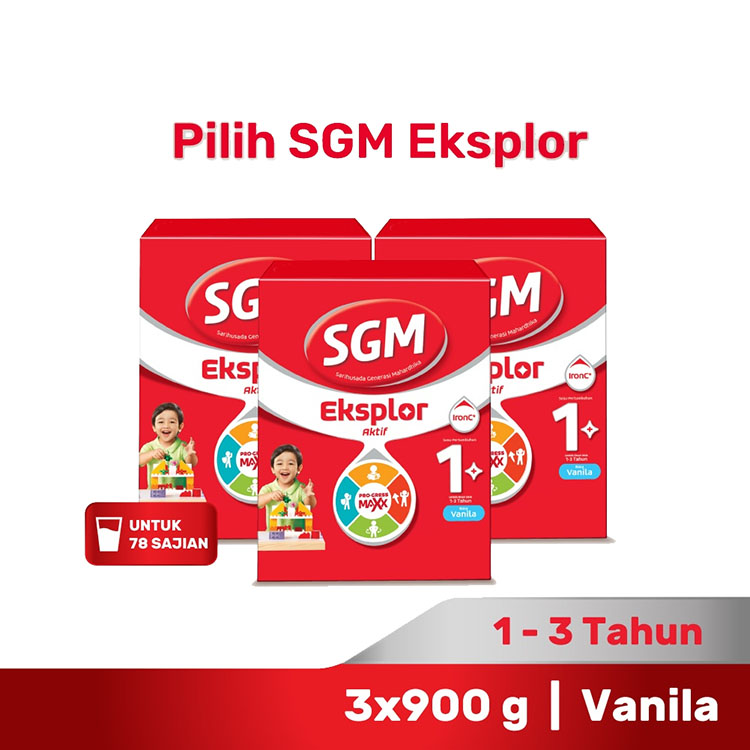 Susu Sgm Eksplor 1+ Rasa Vanilla Pertumbuhan 1-3 Tahun 900gr 4 Box