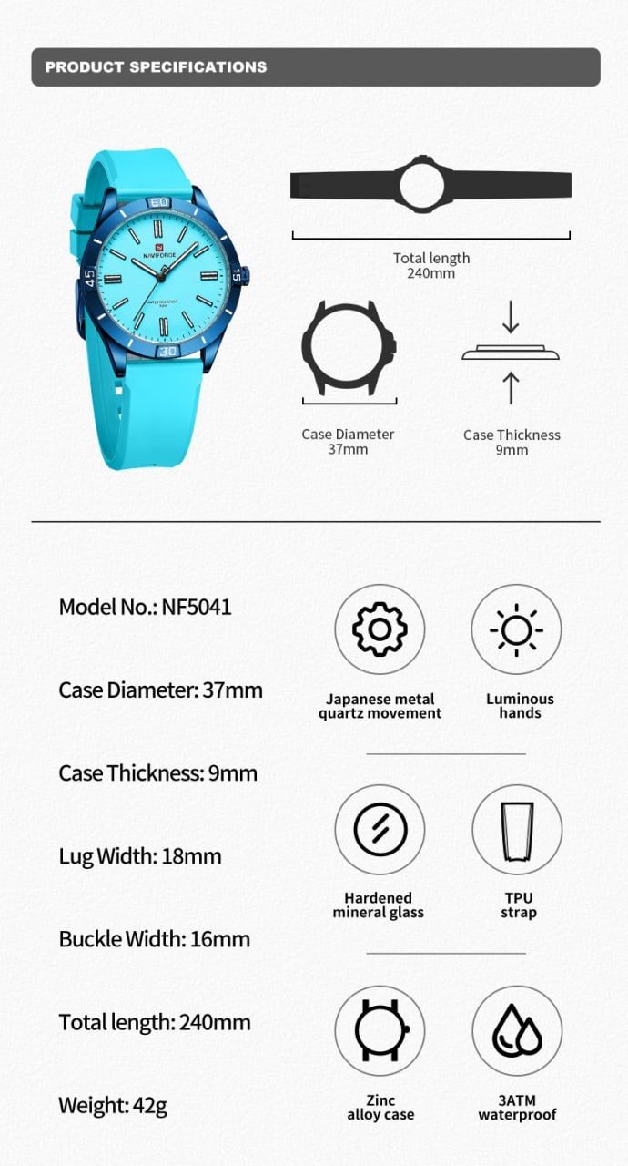 Jam Tangan Wanita NAVIFORCE 5041 ORIGINAL Analog Tali Rubber Silicone Anti Air Renang 3ATM