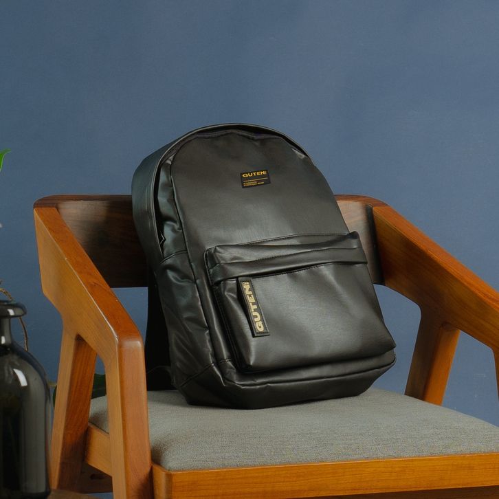 Guteninc - Best Seller Tas Hitam Polos bahan Kulit Sintetis Bruce Faux: Tas Punggung Premium Quality buat Sekolah dan Ku
