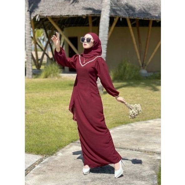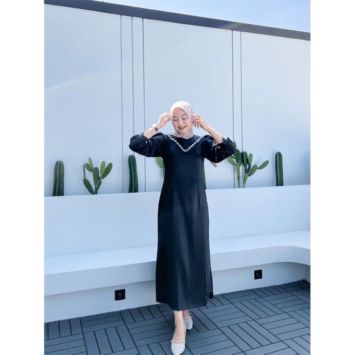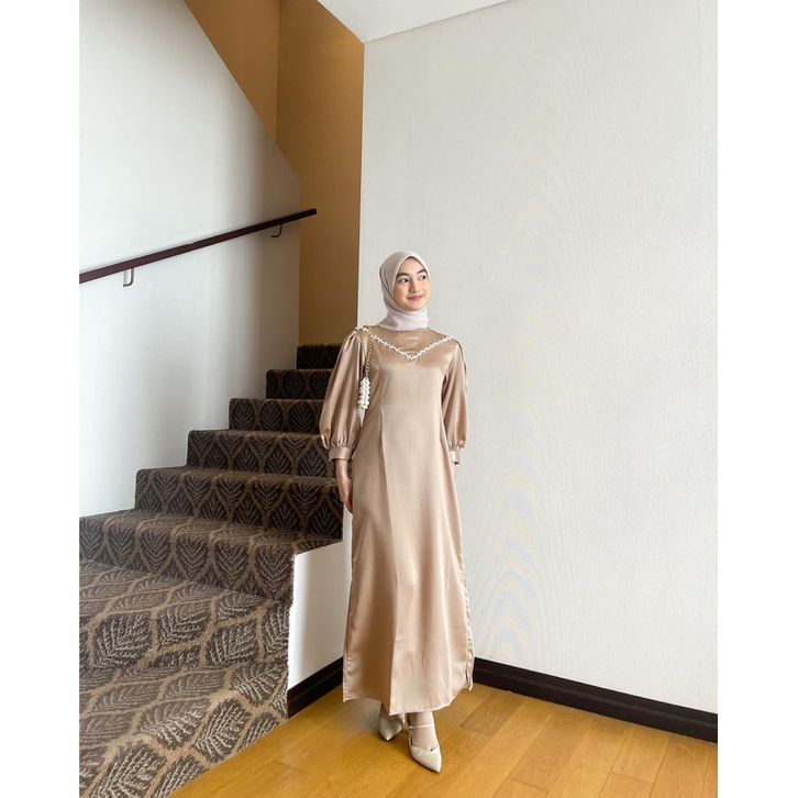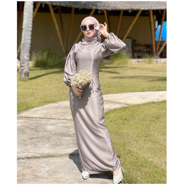 DRESS SATIN MAXMARA PREMIUM POLOS KEKINIAN KOMBINASI PAYET MUTIARA GAMIS KONDANGAN ELEGAN MODEL TERBARU JUMBO
