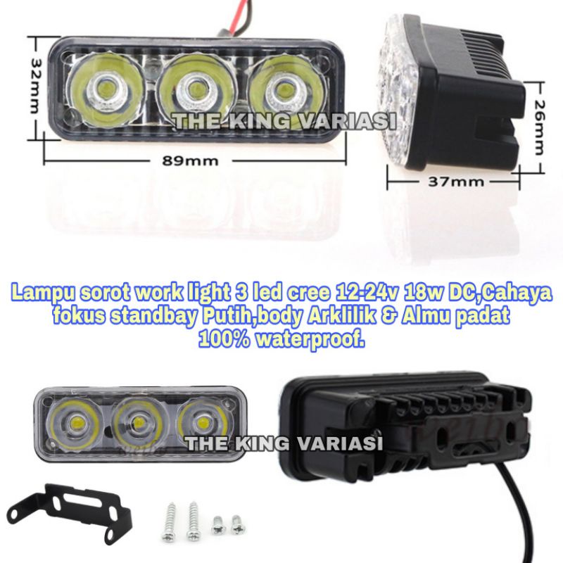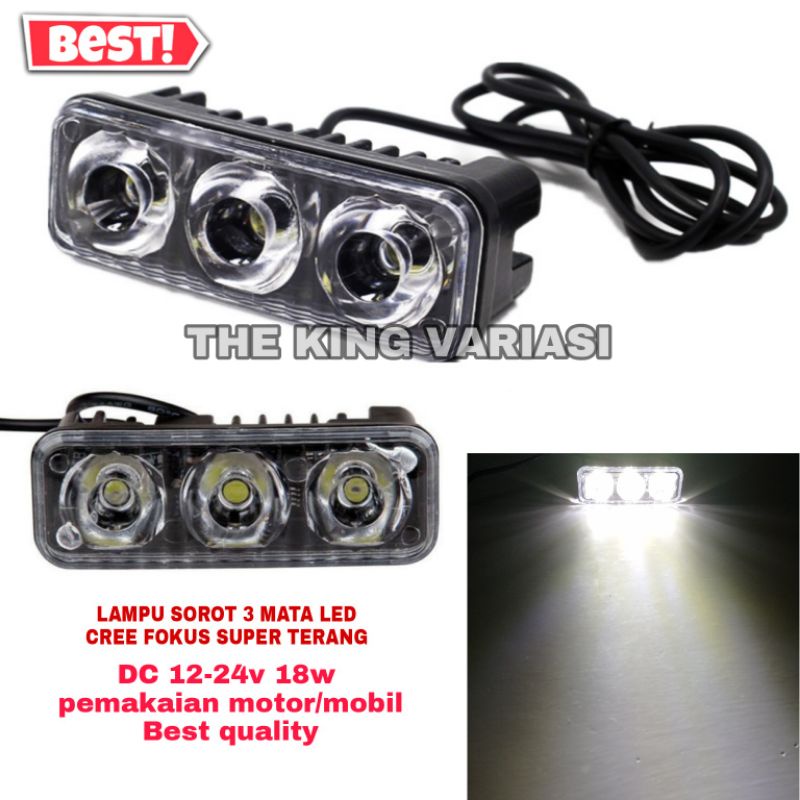 LAMPU TEMBAK CREE 3 LED DC 12V DC 18W/LAMPU SOROT LED/LAMPU TEMBAK 3 MATA CAHAYA PUTIH SUPER TERANG/LAMPU SOROT MOBIL