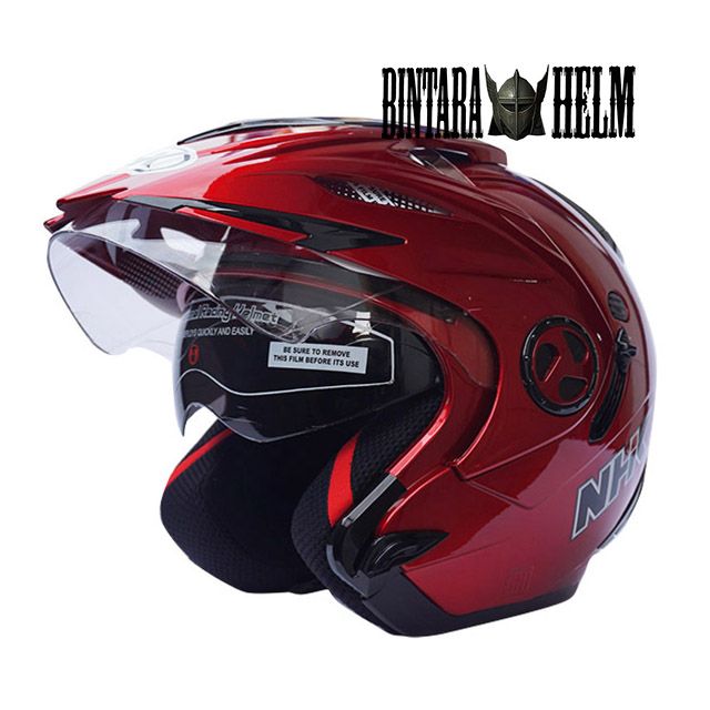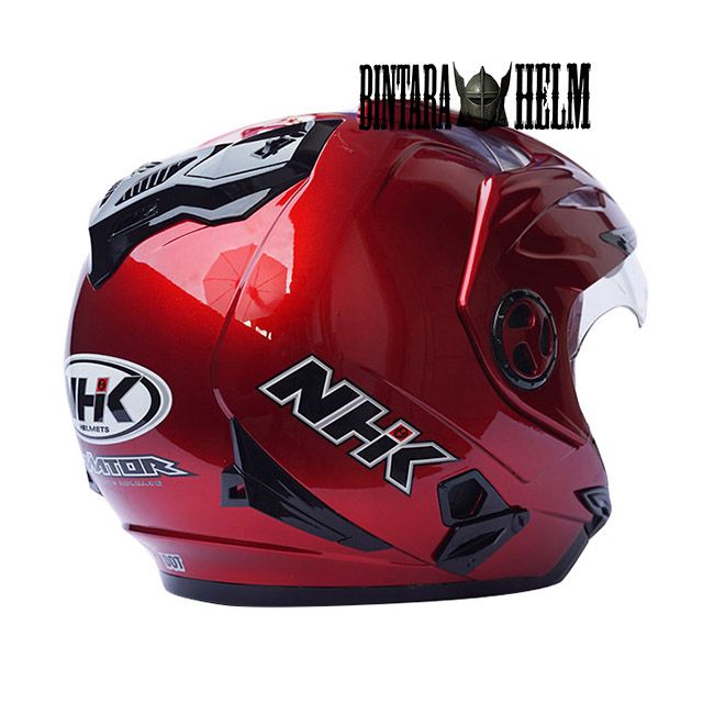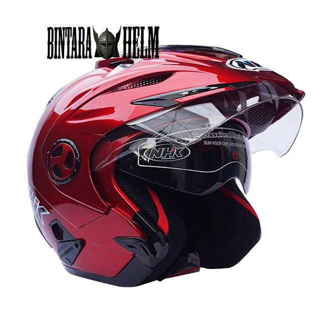 HELM NHK ORIGINAL HELM NHK AVIATOR MAROON METALIC ORI HELMET HALF FACE DOUBLE VISOR NHK