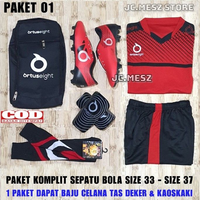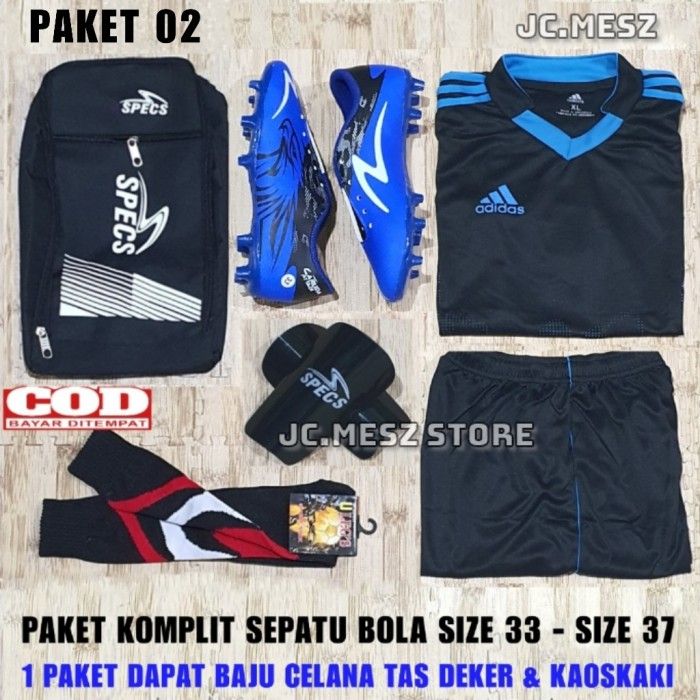 Paket Komplit Sepatu BOLA ANAK 33-37 Dapat Jersey Tas Deker Kaoskaki - SEPATU SAJA, 33