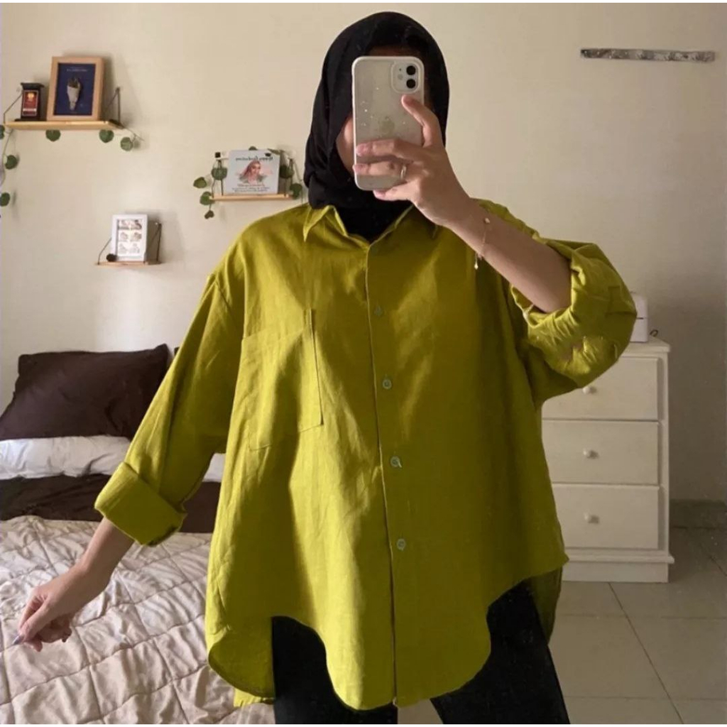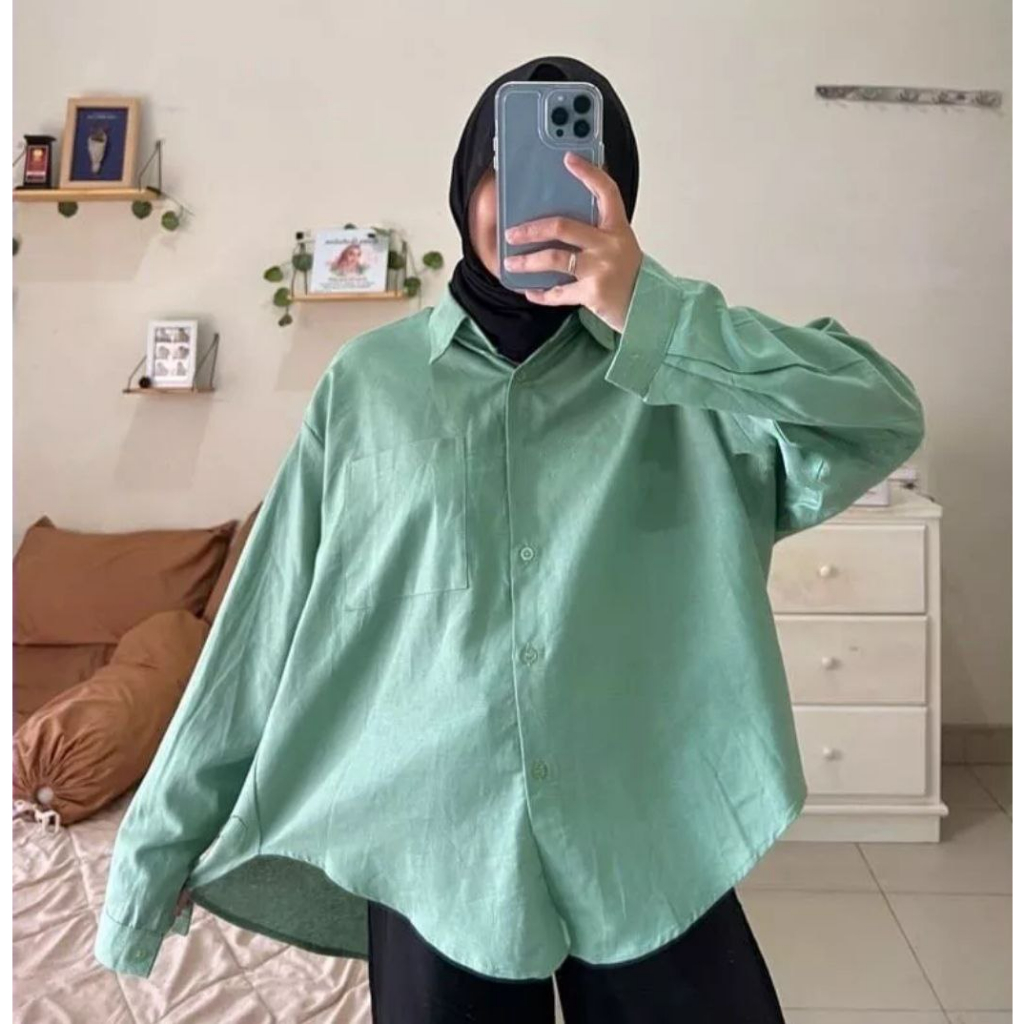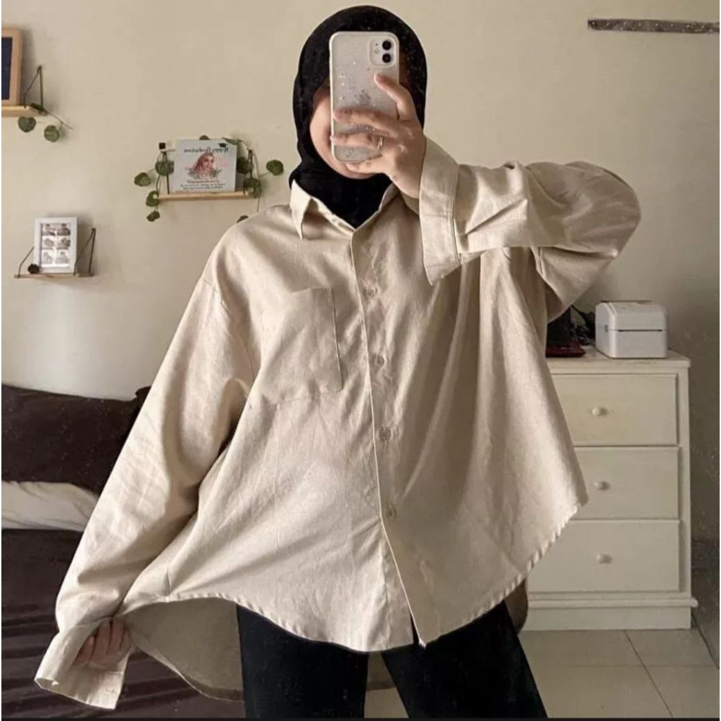 KEMEJA WANITA LINEN OVERSIZE ATASAN WANITA JUMBO