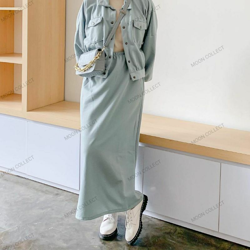 ONE SET OUTWEAR BOMBER JACKET ROK SKIRT BIG SIZE XL SET WANITA / SETELAN WANITA / JAKET WANITA / JAKET BOMBER