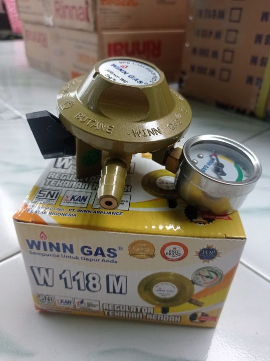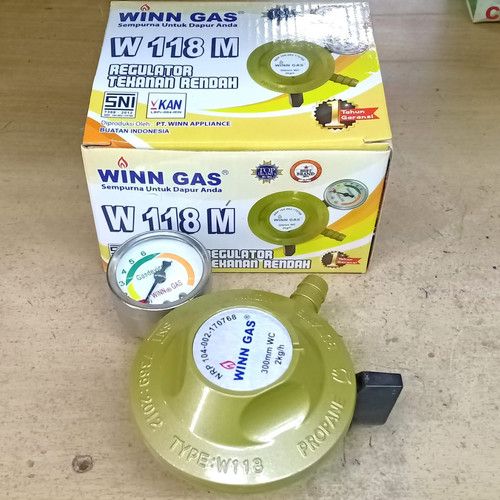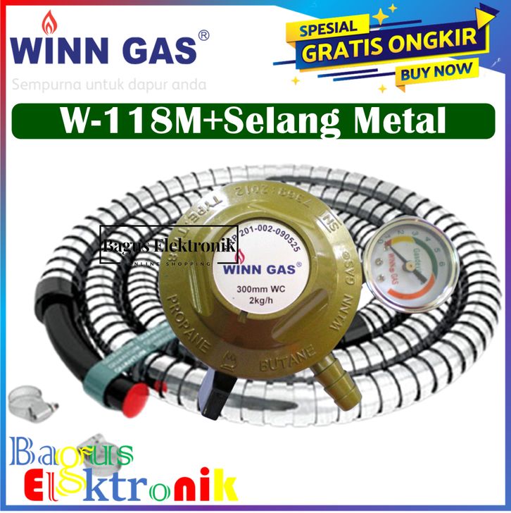 Regulator WINN GAS W-118 M+Selang Flexsibel Metal Regulator Meter Tekanan Rendah Low Pressure QRH-09 Single Lock W-118 M