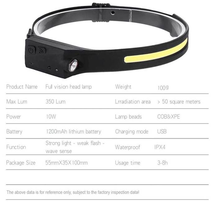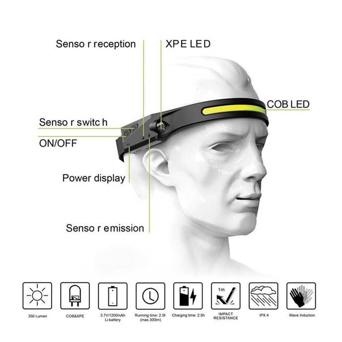 LX200 Senter Kepala Headligth Headlamp Flashlight Sensor 5 Mode USB LED XPE+COB Rechargeable Waterproof IPX4