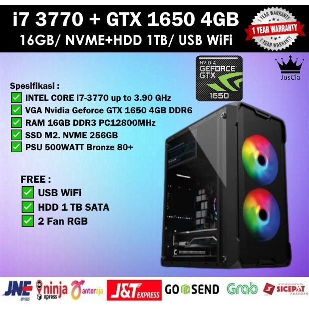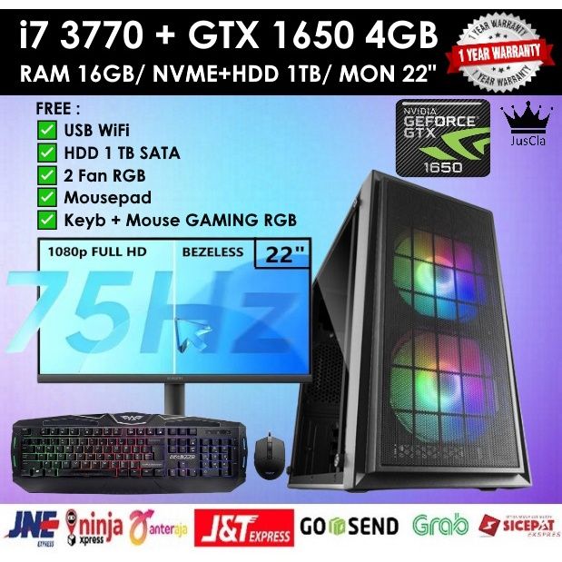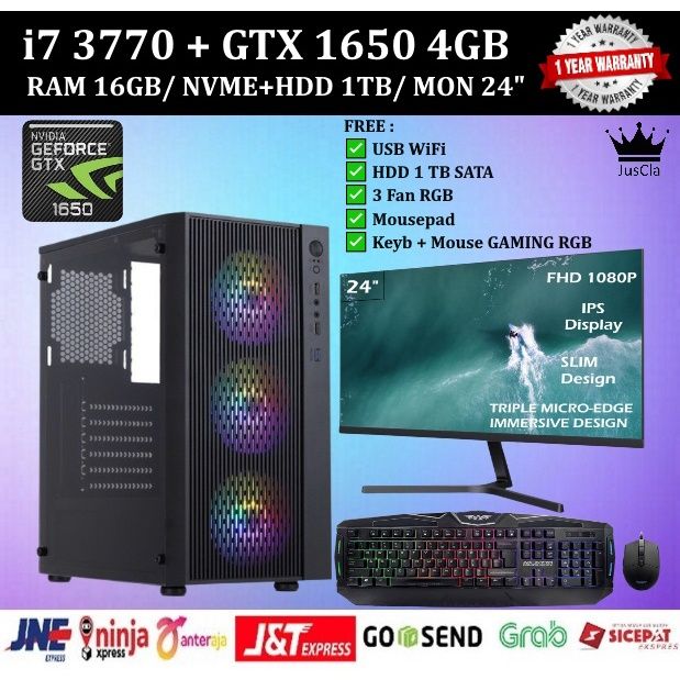 PC Gaming FullSet Intel i7 3770 3,9ghz|16gb|VGA GTX 1650 4Gb|ssd 256 Gb NVMe | HDD 1TB