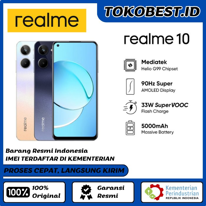 REALME 10 8GB/256GB | Mediatek Helio G99 | 5000mAh 33W | Garansi Resmi 12 Bulan Original.