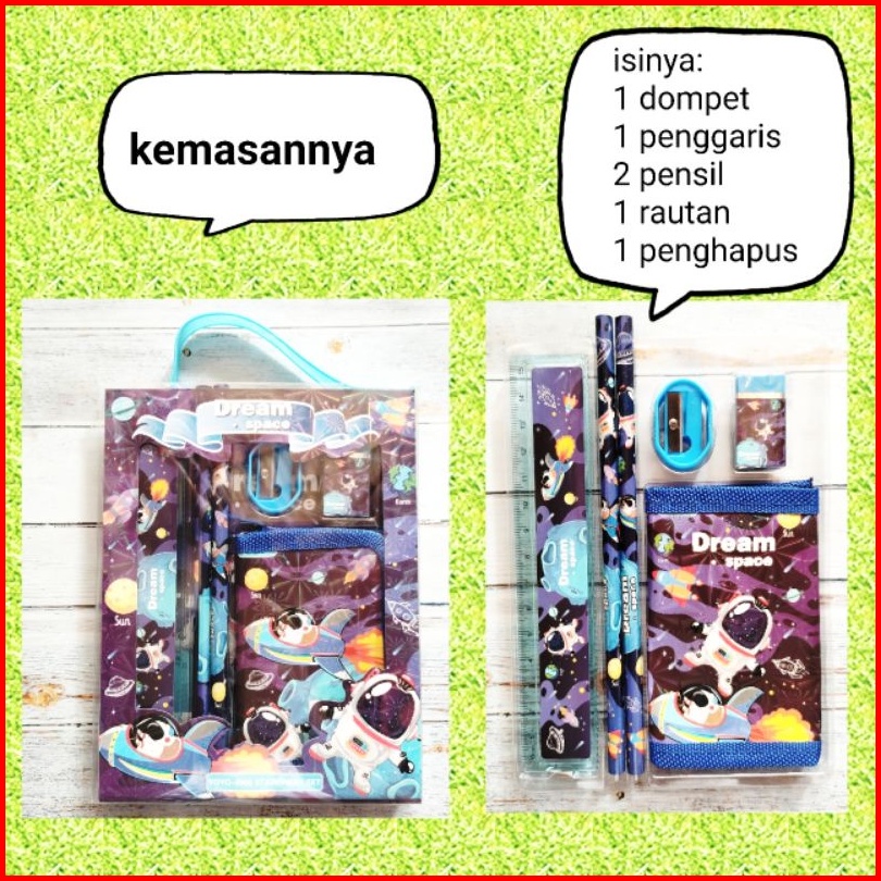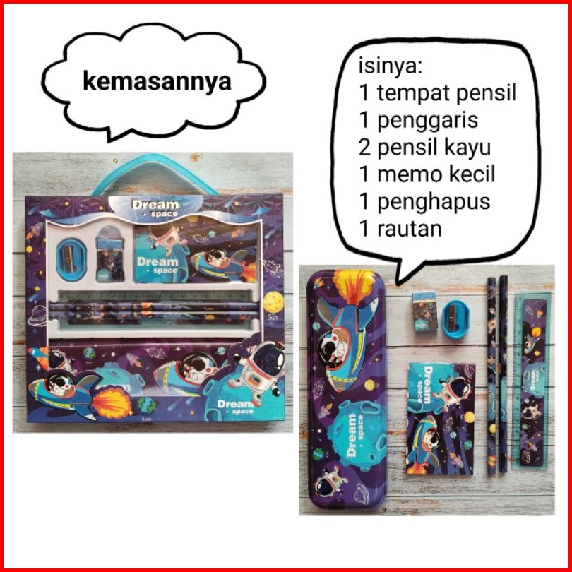 Study Set Studi Set Alat Tulis Set Peralatan Anak Sekolah Tempat Pensil Karakter Astronot Astronout