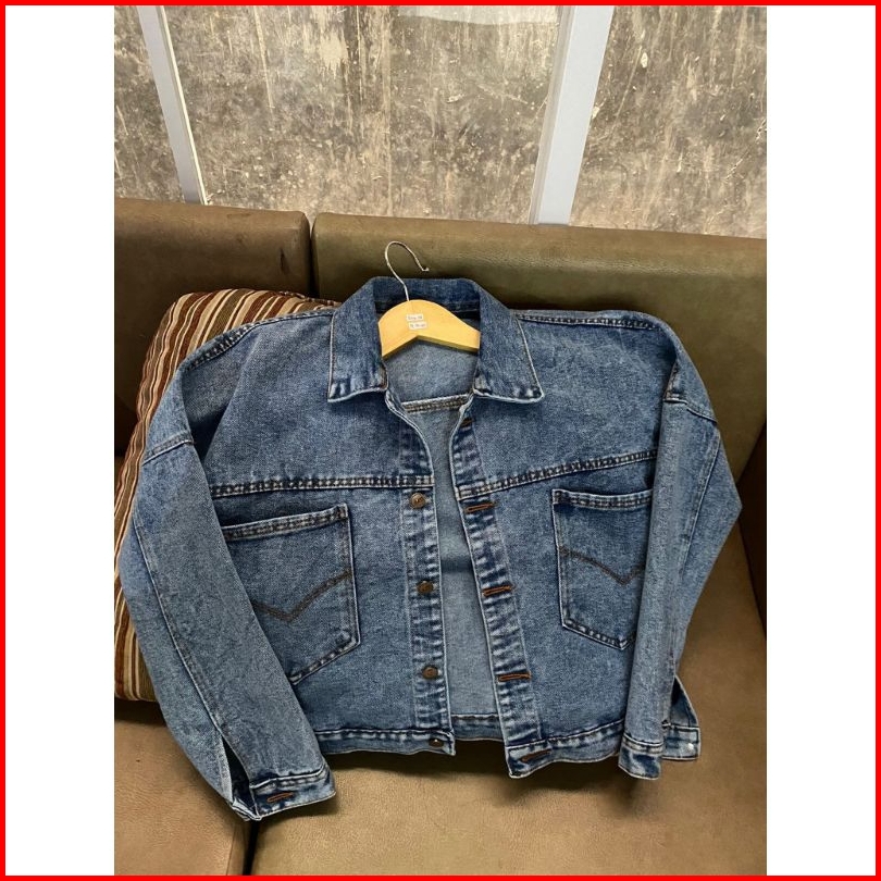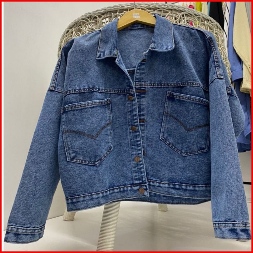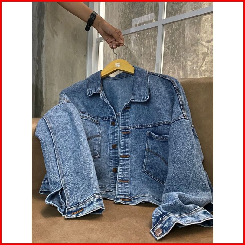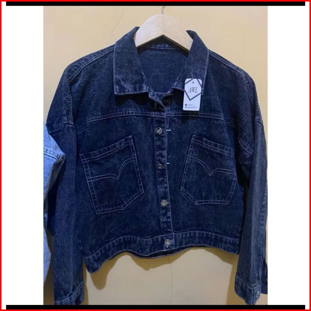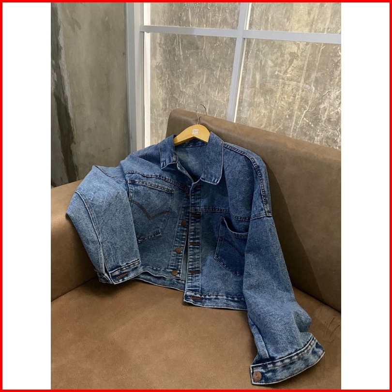 Jaket Vanessa Crop Jacket Jeans Vintage Wanita Oversize