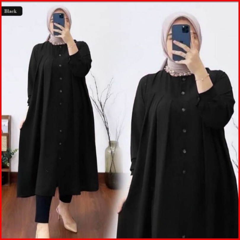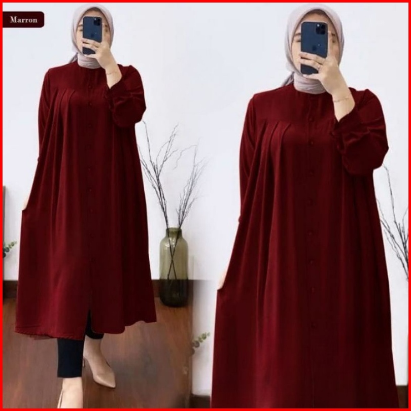 Hd16 Joi Long Tunik Midi Dress Gamis Wanita Tunik Lebaran 2024 Fashion Muslim Terbaru Atasan Wanita Terlaris Long Tunik