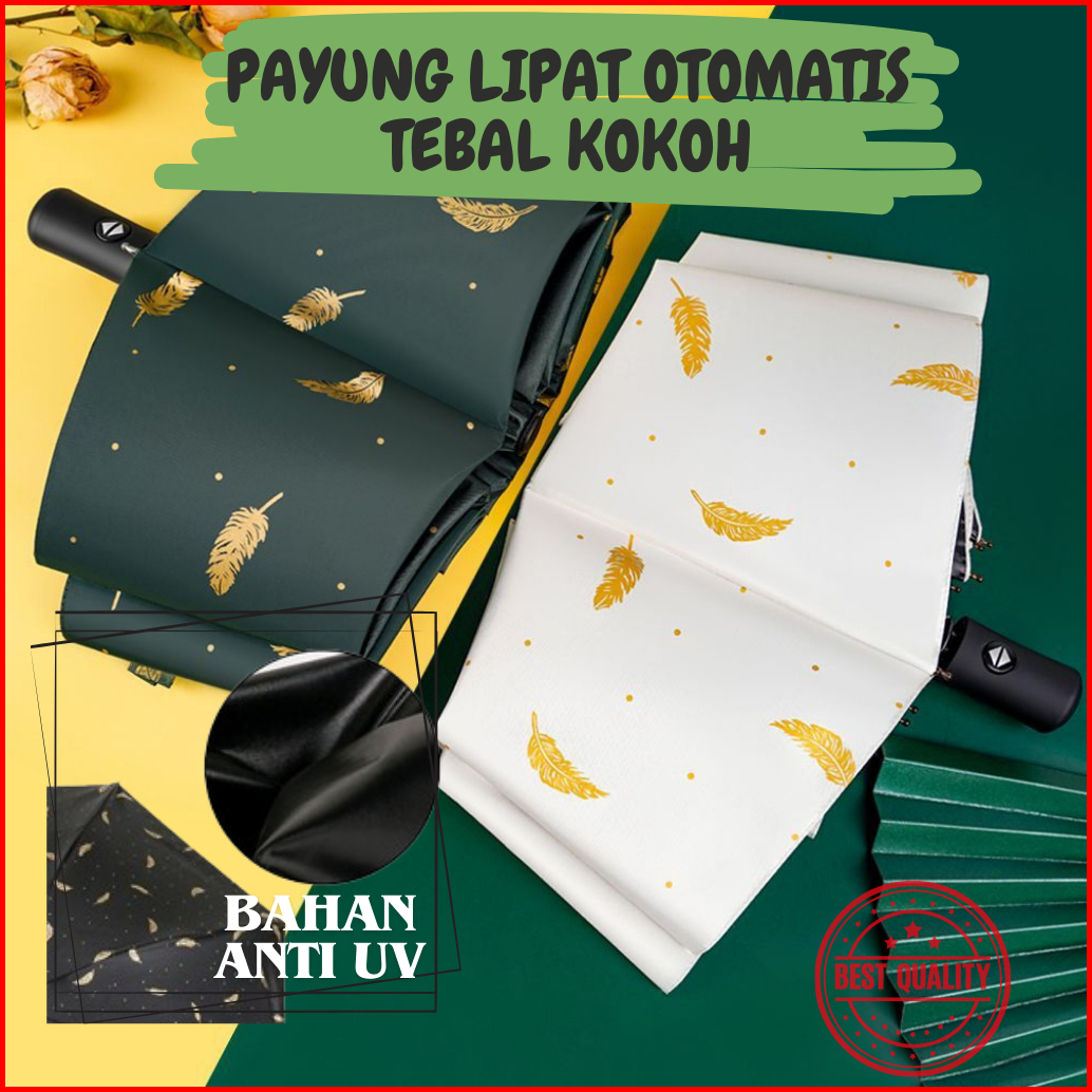 Payung Lipat Otomatis Premium Anti Sinar Uv Motif Dan Gambar Bulu Payung Lipat Kokoh Tahan Angin Kencang Payung Cantik P