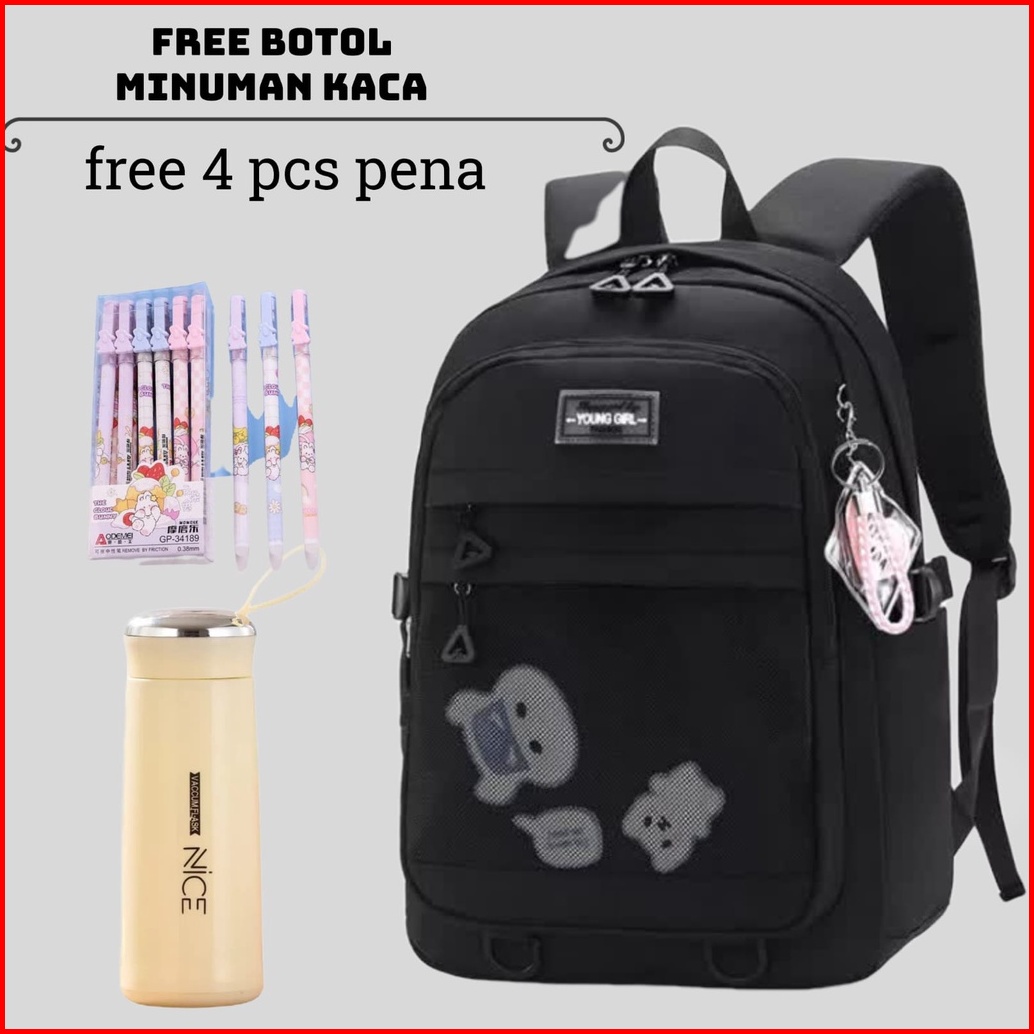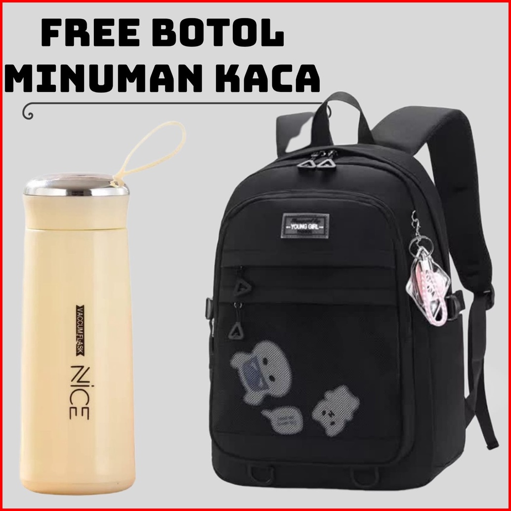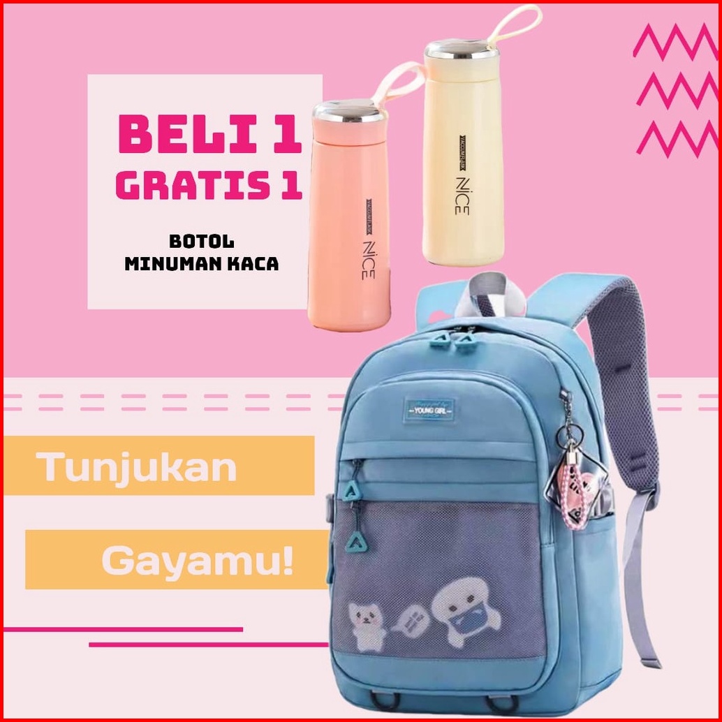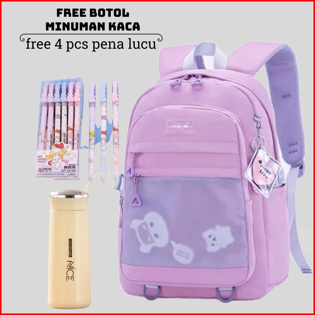 Tas Sekolah Anak Perempuan Sd Smp Sma Ransel Kerja Original Tas Ransel Wanita Free Botol Minum Kaca