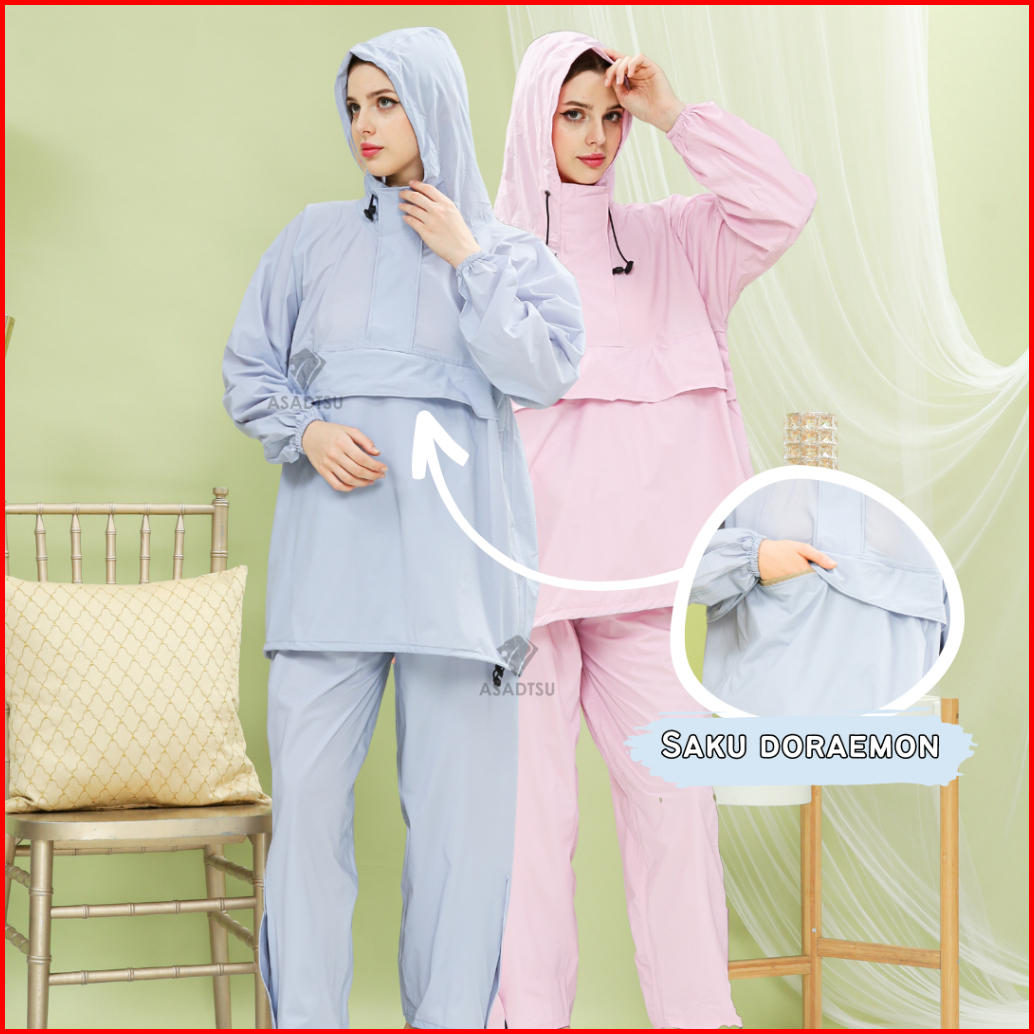 Asadtsu Jas Hujan Saku Kangguru Besar Setelan Dewasa Pria Dan Wanita
