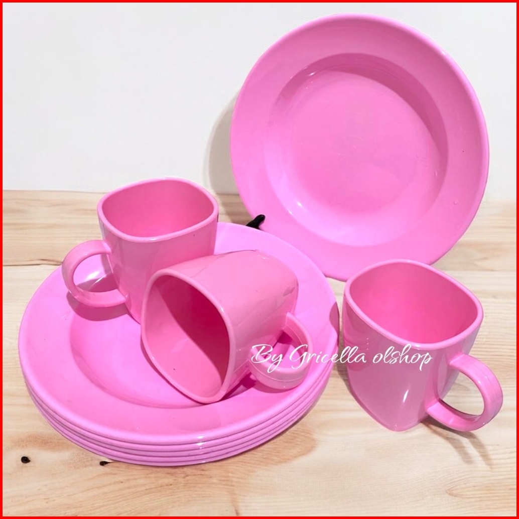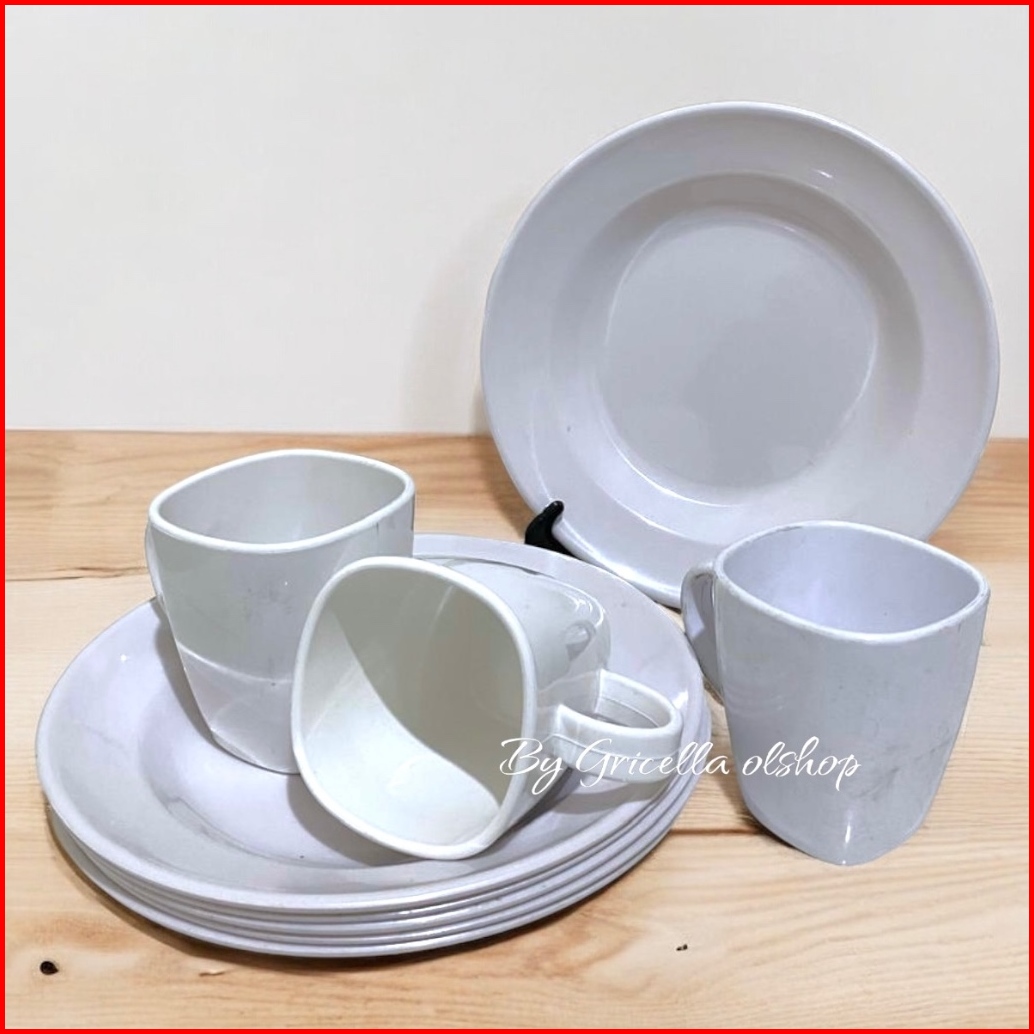 Promo Paket Hemat Peralatan Makan Piring Dan Gelas Bahan Melamin Asli Tebal Dan Tahan Panas