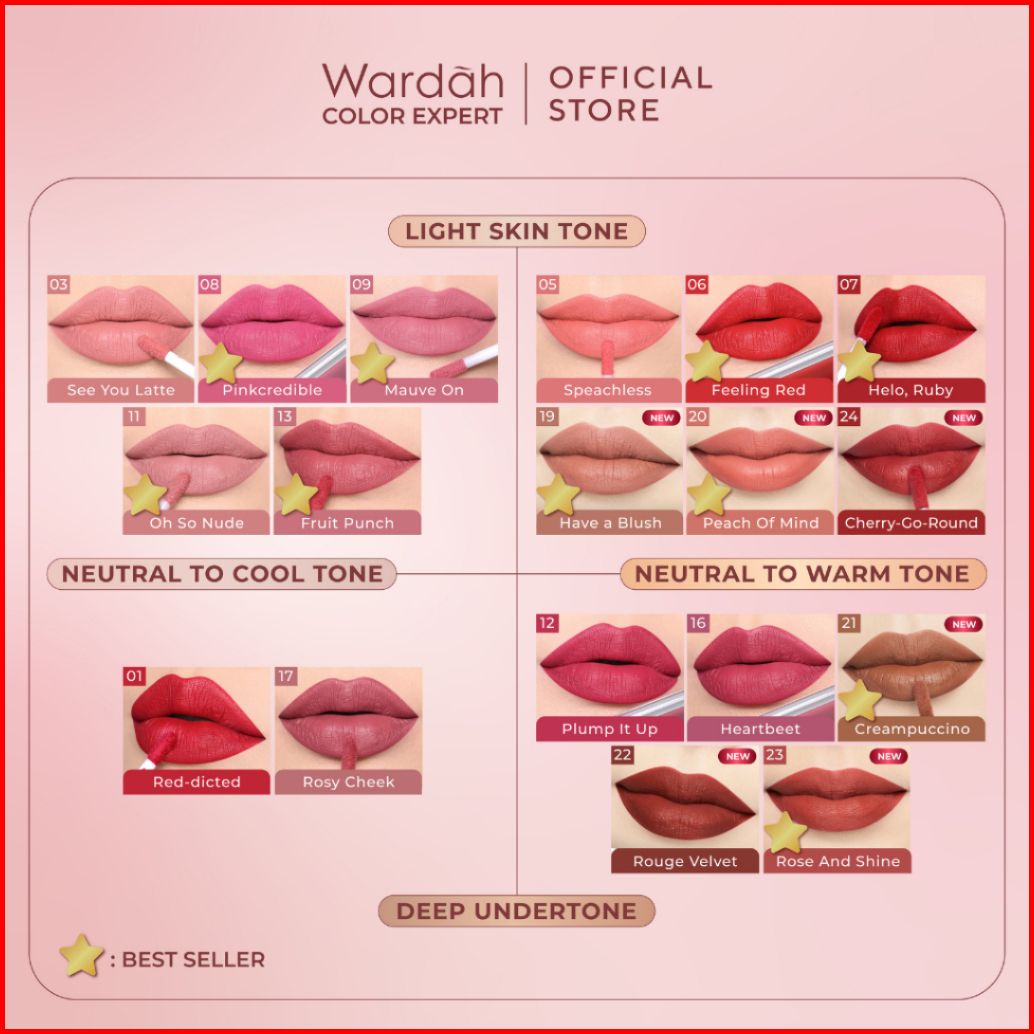 Wardah Matte Lip Cream 4 Gr - Warna Intense Dan Tahan Lama - Matte Finish